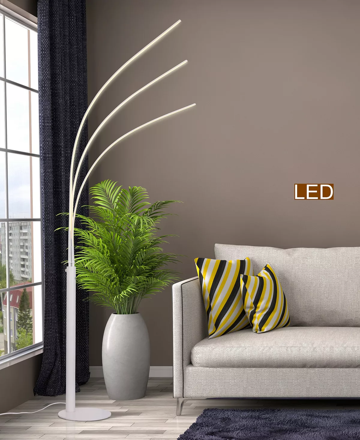 Light up your living room, bedroom or office with this sleek and modern “Aurora” 3-Light Linear LED Arch Floor lamp with exclusive Touch Dimming switch. “Aurora” LED floor lamp is a perfect addition to any room with modern or contemporary decor.
