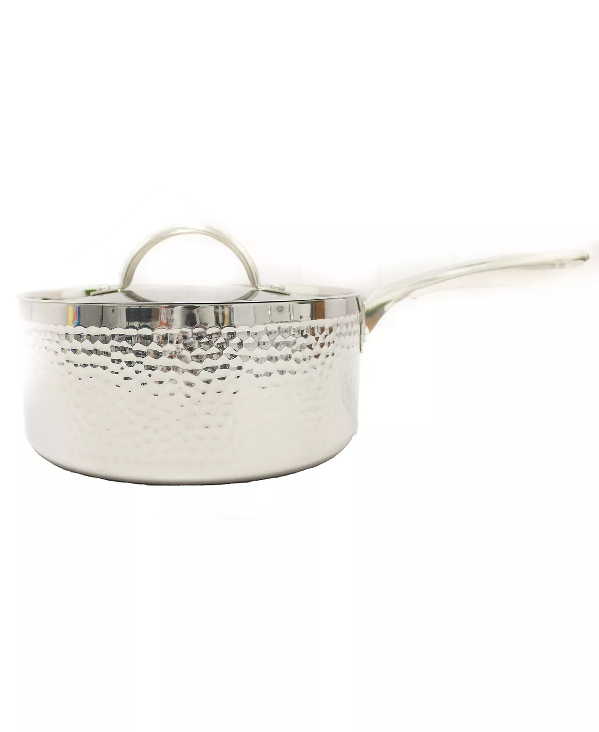This 7.8″ saucepan with lid hammered 3-ply silver-tone is a gorgeous addition to any stainless steel collection. The striking appearance of this sauce pan will accompany any kitchen while also bringing a luxurious cooking process to any home.