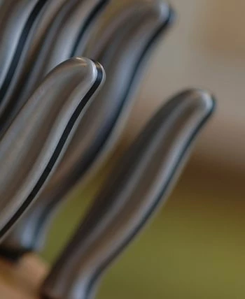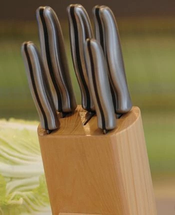 A sleek contemporary look in lasting stainless steel, this set of prep-work essentials from BergHoff gets your collection off to a great start. A wooden block keeps them handy on the counter.