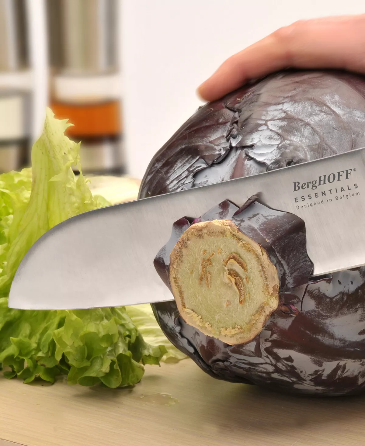 This 7″ santoku knife from the gourmet line is precision forged from one piece of nostain high carbon steel. Blades are hand sharpened in the time honored tradition scientifically engineered for a perfect rocking action and mated to ergonomic handles.