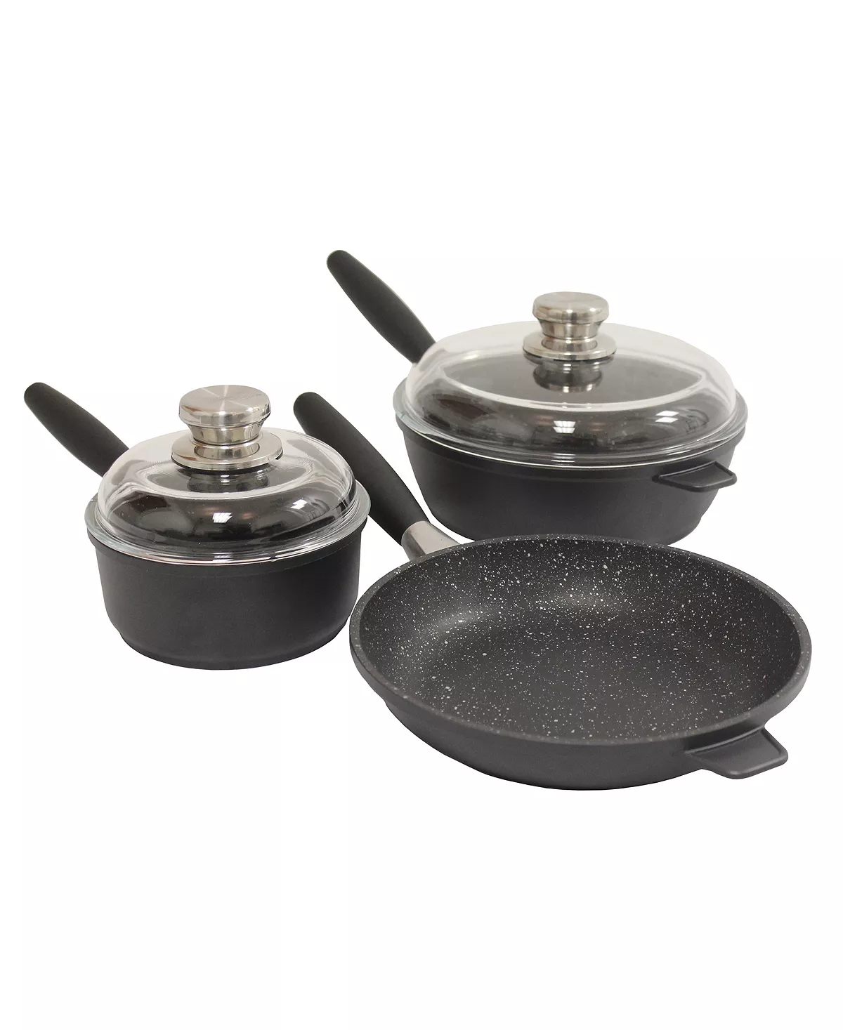 - Set includes- 10″ Saute pan, 10″ high-sided saute pan, 1.5 Quarts sauce pan