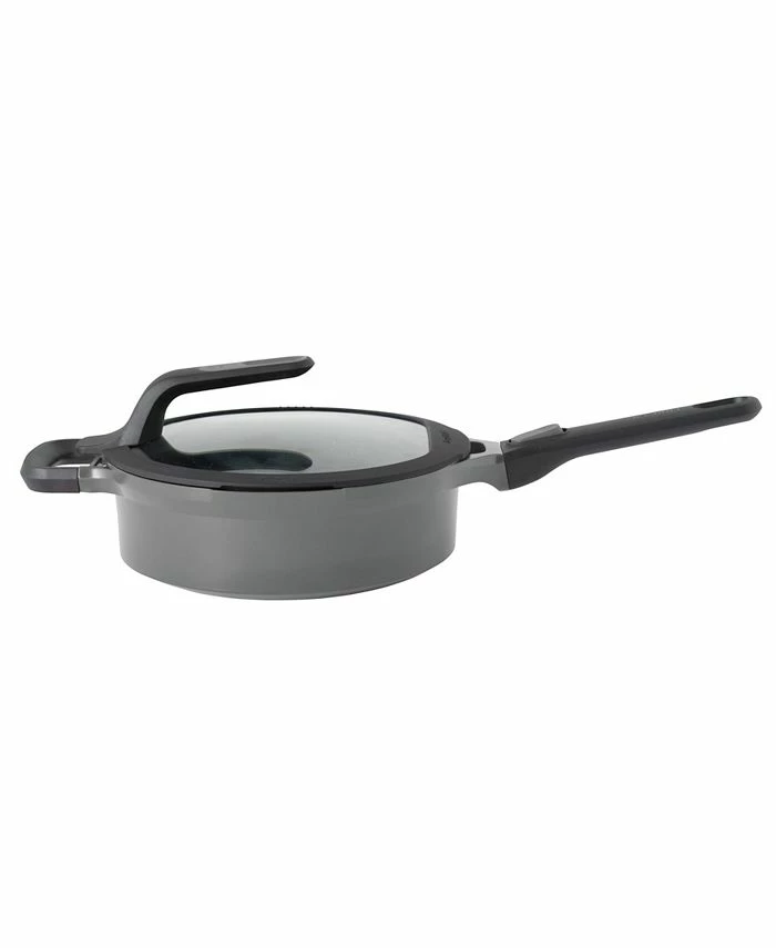 Pan-frying chicken, braising meat or sautéing vegetables, whatever your dish needs, you’ll easily get it done with this covered sauté pan. It’s suitable for any kind of stove top and comes with a stay-cool detachable handle that you can snap off to save valuable storage space in your kitchen drawer. The lightweight aluminium body features a multilayered non-stick coating that ensures an easy food release and special pouring rims for drip less pouring. To top this off, there’s the clear glass lid that can be placed vertically on the body of the pan to keep your hands free for stirring and serving and has two different sized pouring areas for easy straining of various ingredients.