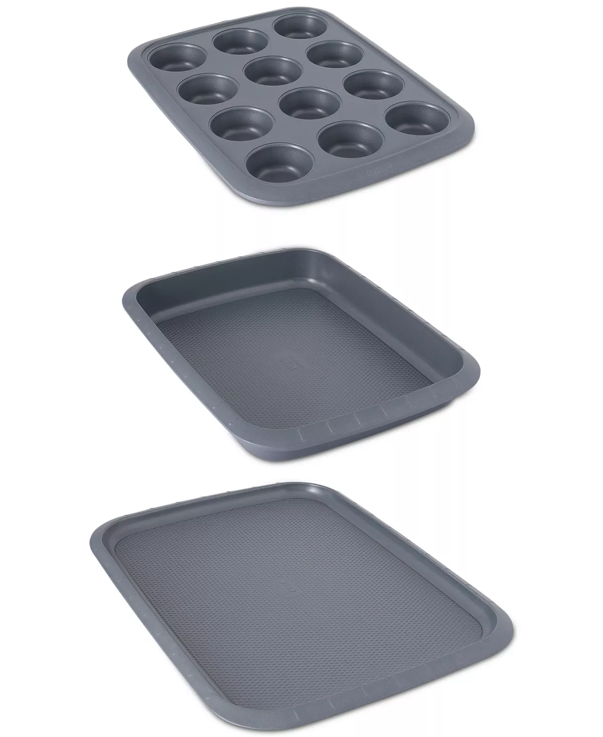 Create delicious cakes, cookies and muffins with this essential 3-piece Gem baking pan set from BergHOFF. Carbon steel ensures even heating and years of use, while a nonstick coating make cleanup a piece of cake.