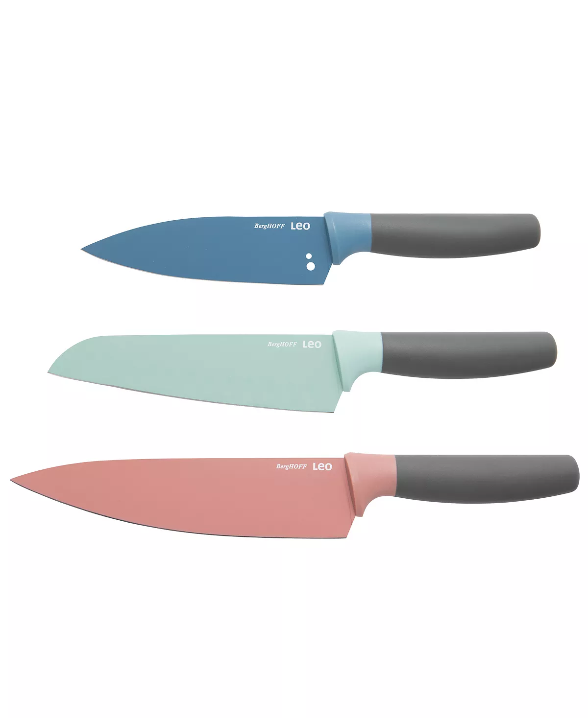 Leo knives are known for the versatility – and this 3pc Cutlery Set is no different You get a Santoku knife, a chef knife, and then another chef knife which also holds an herb stripper, so you can have fresh herbs ready at your disposal. A soft grip handle and quality stainless steel will make these knives last.
