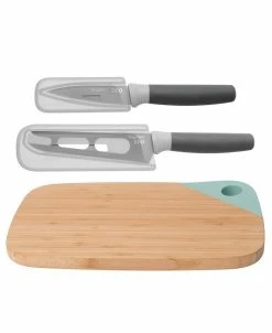 If you’re looking for an all-round cutting set, this small cutting board with stainless steel cheese knife and paring knife is the perfect solution. The bamboo cutting board is great for cutting a wide variety of ingredients but can also be used as a serving tray for cold meat and cheese. So when you’re having your next wine and cheese night, simply get out this set, enjoy the ease with which the cheese knife glides through the cheese thanks to the blade with nonstick coating and cut-out pattern and use the convenient fork-tipped spear for serving.
