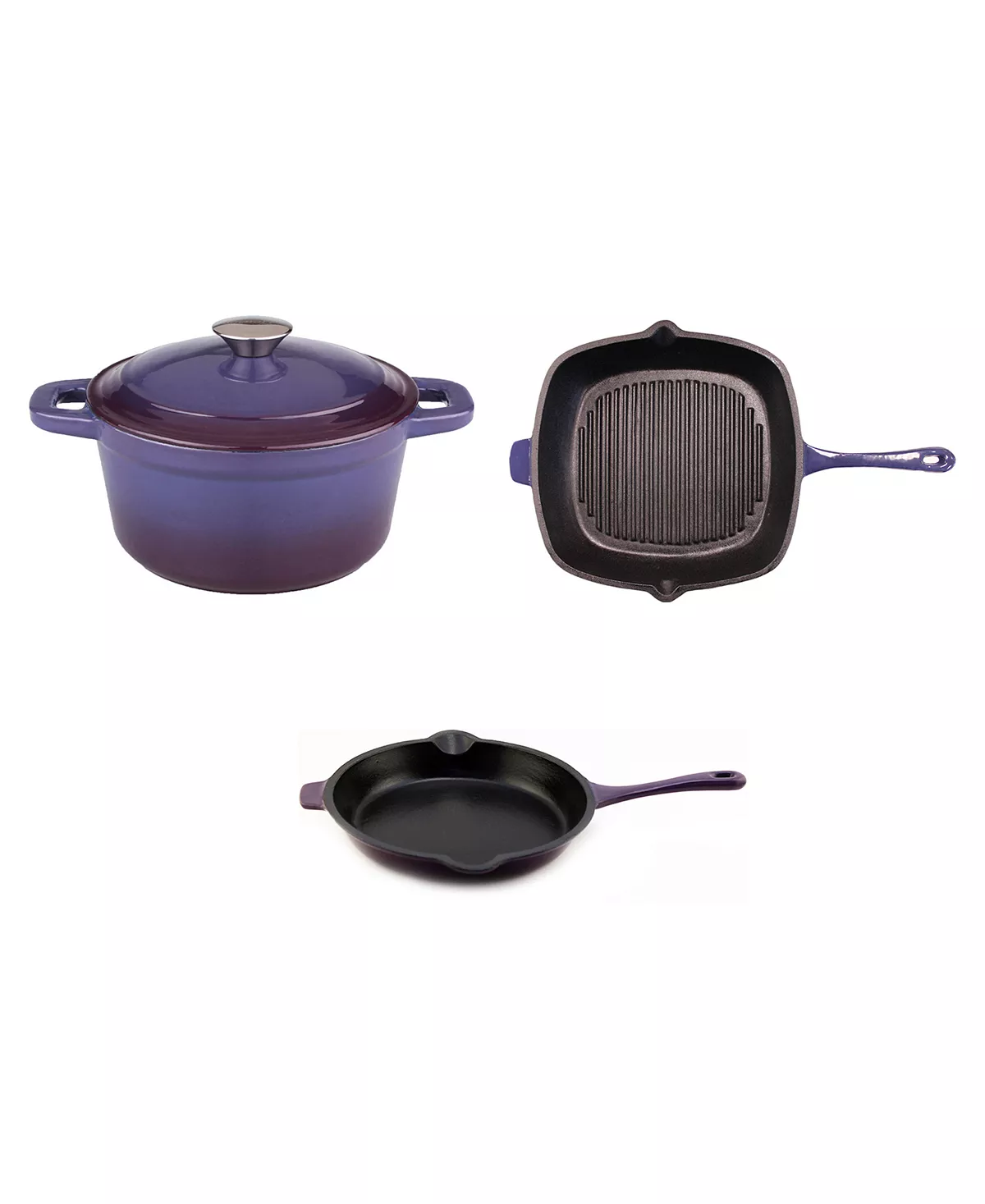 Cast iron has great heat retaining abilities and can be used on any heat source. Classic in a modern design, solid material for all your cooking needs. Oven safe up to 400°F. Includes some of the most used pans that are a must have for any kitchen.