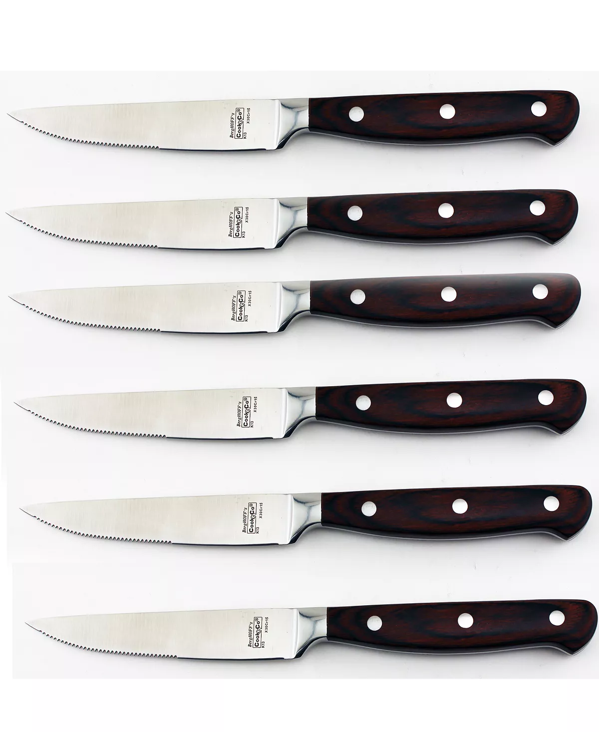 This 6 piece steak knife set is made of durable high-quality stainless steel which is absolutely indestructible and corrosion resistant. The highly polished surface is hard wearing, thick, easy to clean and hygienic. Advanced manufacturing methods plus traditional craftsmanship guarantee flawless product quality.