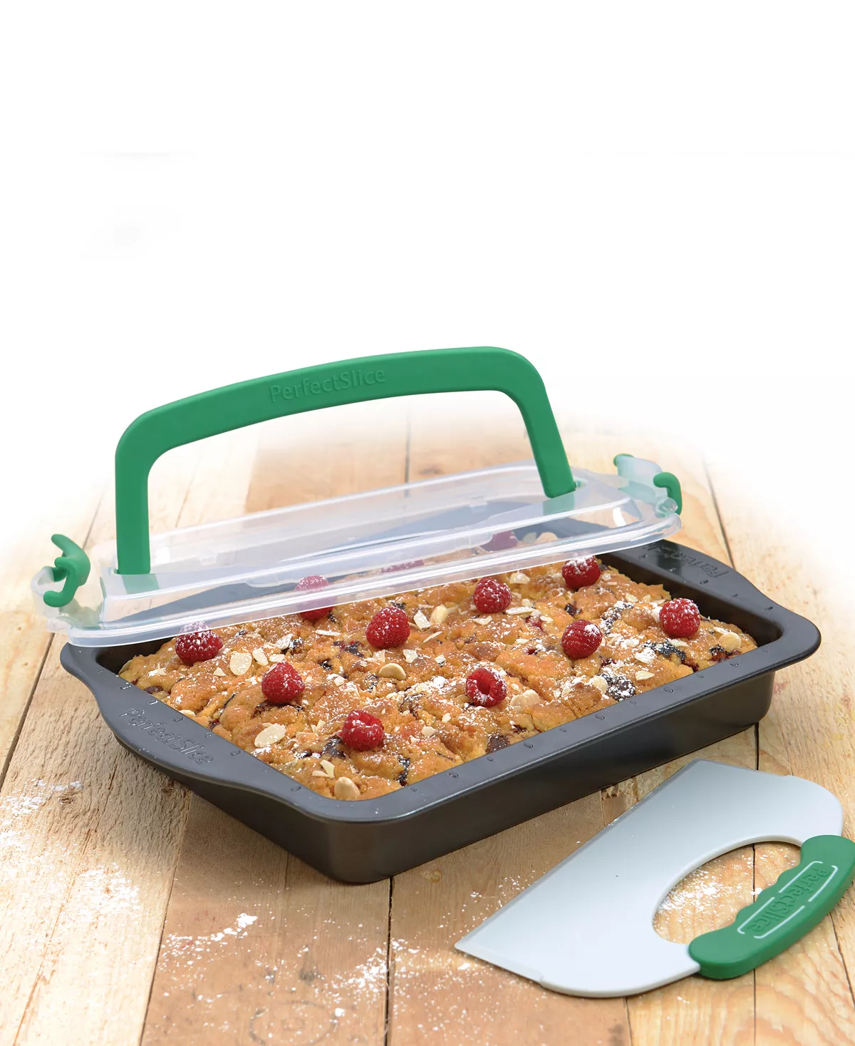 - Includes handy Perfect Slice cutting tool that won’t damage your pan