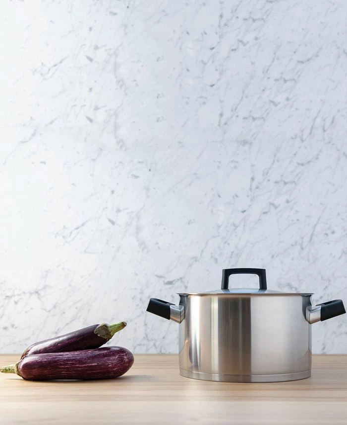 - 18/10 stainless steel, satin finish inside and outside, 18/10 stainless steel withnylon knob and stay cool phenolic resin handles