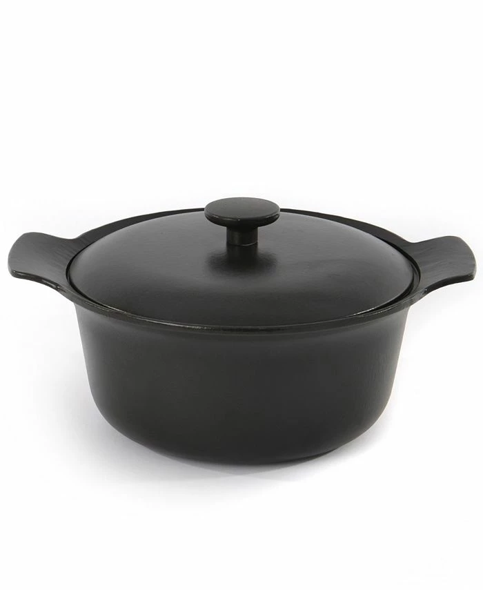 5.5qt black oval covered casserole dish is made of cast iron which has great heat retaining abilities: it’s the perfect choice for slow cooking and for hearty stews prepared in the oven or on the stovetop. The cover locks in the moisture and small bumps on the interior make sure the evaporated juices are directed on to the food for tasty results.