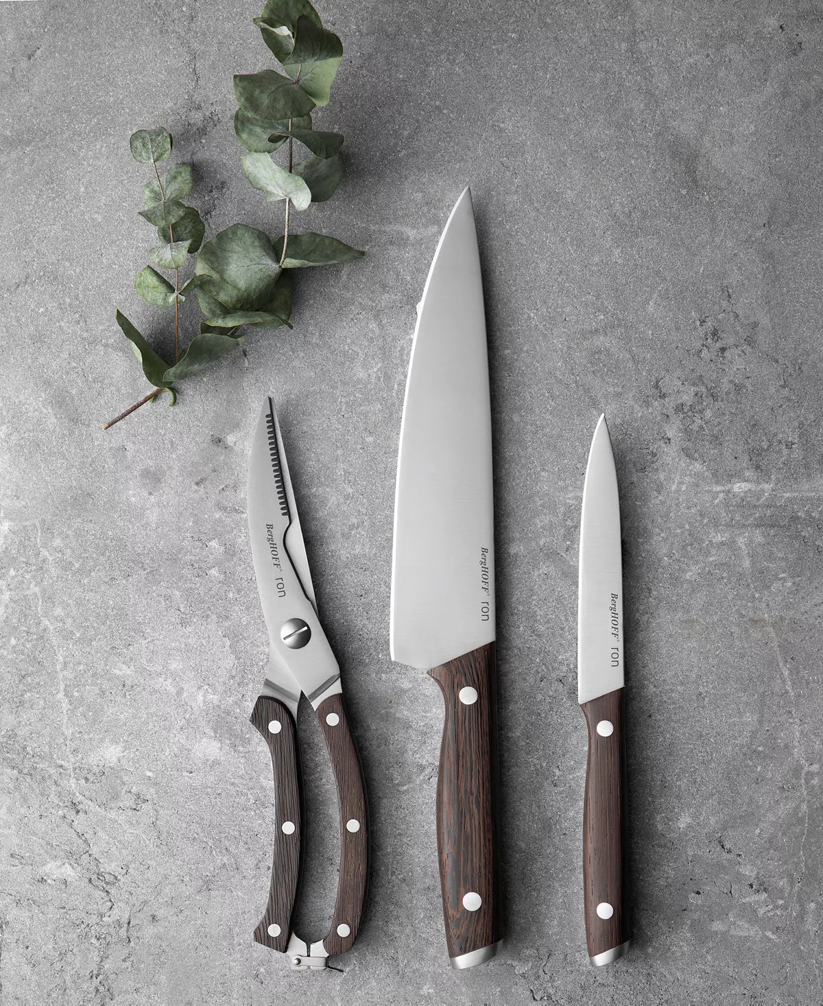 Peeling, slicing, dicing, chopping and cutting, with this multi-functional knife set you’ve got the tools to do it all The high-quality stainless steel blade of the utility knife, chef’s knife and poultry shears effortlessly slide through your meat, fish, poultry, fruit and vegetables while the crack-resistant wooden handle fits comfortably in your hand for a secure grip and gives each knife a unique character that instantly adds a touch of authenticity to your kitchen.