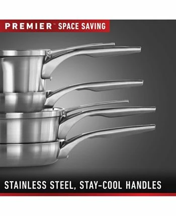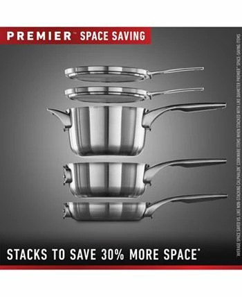 “Calphalon Premier Stainless Steel Cookware delivers precision cooking performance, with an elegant, classic look that will inspire any chef. The unique, space-saving design securely stacks to save 30% more space,* and the cookware and flat glass covers stack and nest in any order.** The 3-layer metal construction features a heavy-gauge aluminum core that distributes heat evenly and allows you to brown, sear, and saute with consistency and confidence. The elegant stainless steel finish is dishwasher-safe for easy cleanup. Calphalon Premier Stainless Steel Cookware is oven-safe up to 450 degrees F so it can go from the stovetop to the oven for heating and cooking versatility. This cookware set includes 8″” and 10″” diameter cookware which form two separate stacks to save more space in the kitchen. Unlock your culinary genius with Calphalon Premier, and experience superior cookware that’s built to last. *Average space saved vs. like non-stacking Calphalon cookware items. **Cookware must have same diameter.”