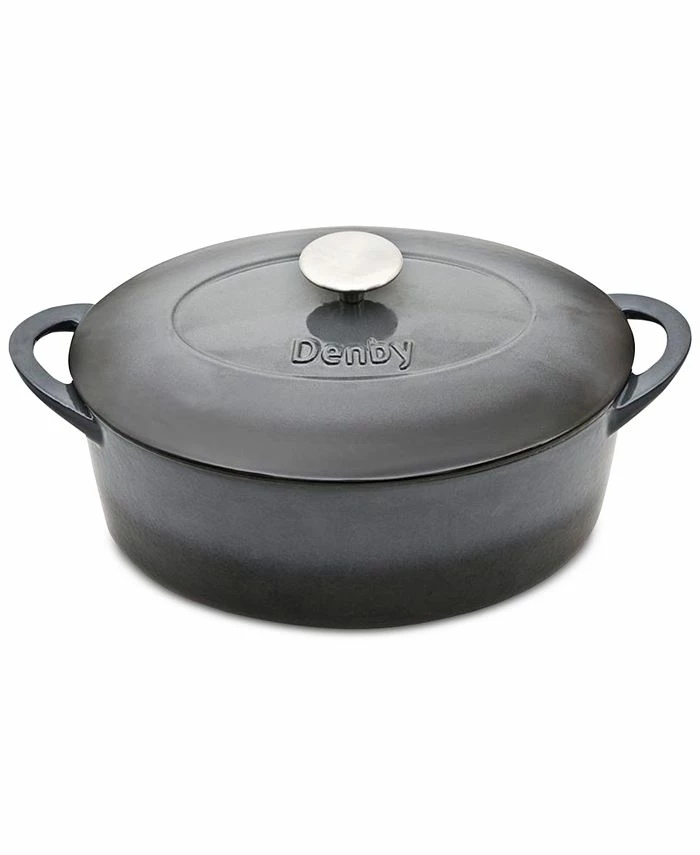Ideal for preparing hearty portions of savory stews or slow-cooked meats, the Denby Halo oval lidded casserole features a durable enamel-on-cast-iron design with convenient side handles.