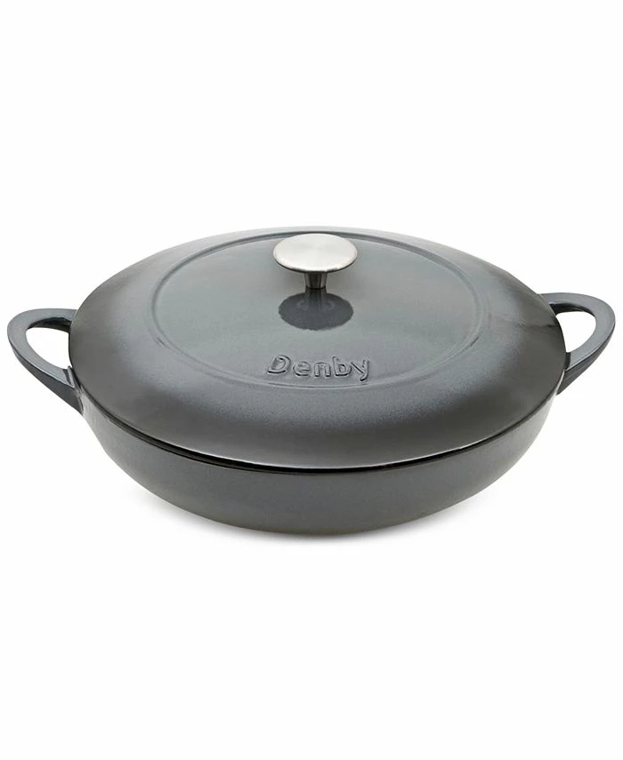 Sauté a vegetable dish or cook a one-pot meal in the versatile cast iron design of Denby’s Halo shallow covered casserole with convenient side handles.