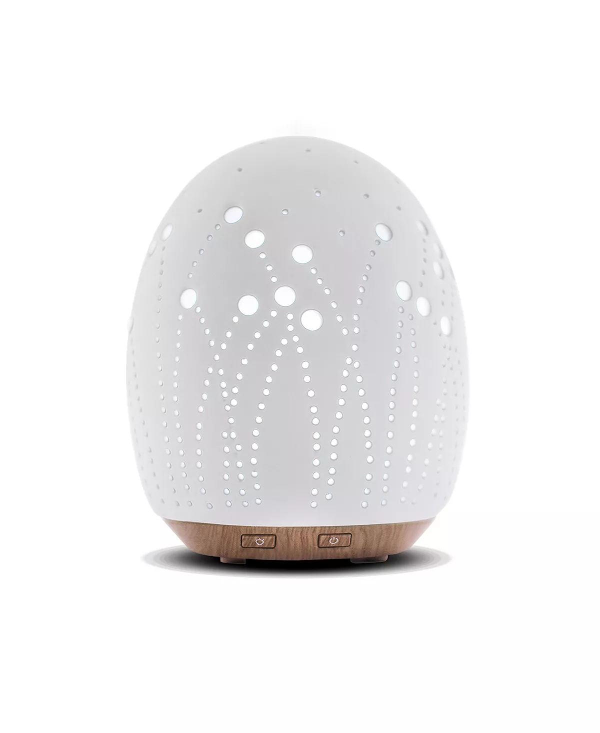 Inspired by a soft spring meadow, this diffuser is clean and simple made from handcrafted ceramic with a complimentary faux wood base. Enhance your space by adding water and essential oil for hours of fragrant mist.