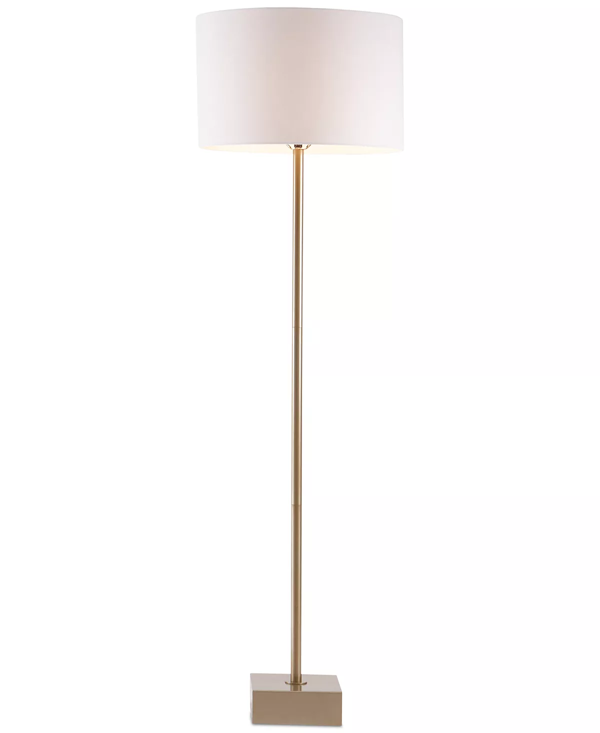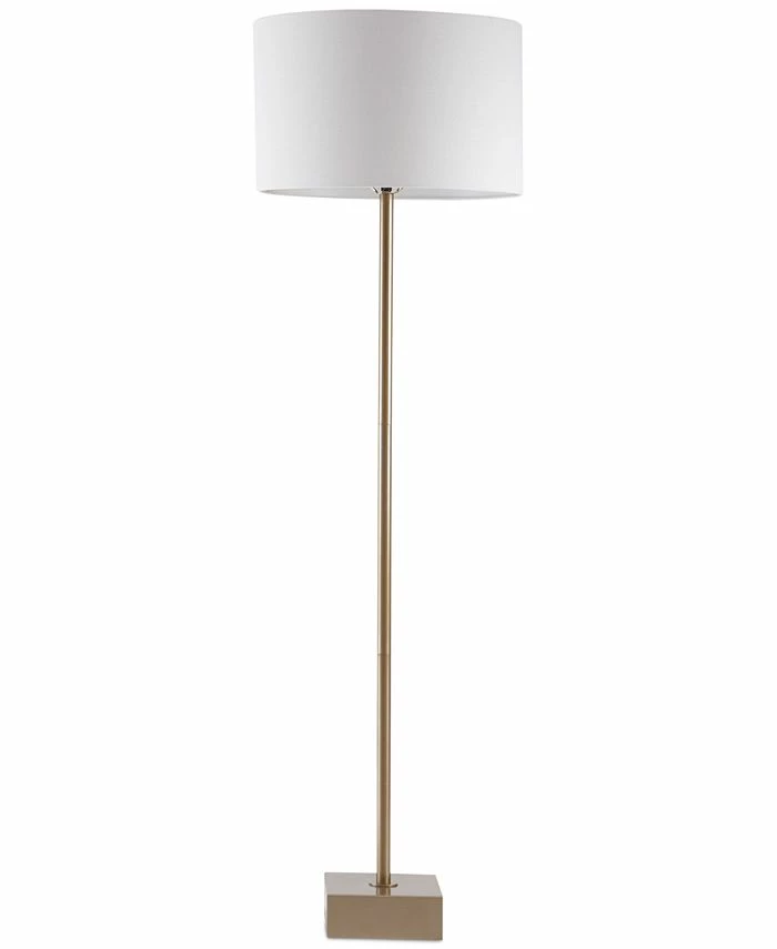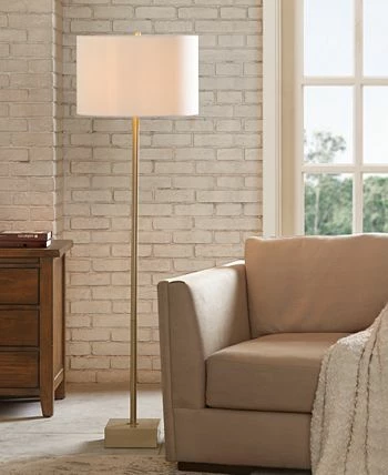 Streamlined and modern, this tall Bringham floor lamp from JLA Home with its antique brass finish and sleek style can fill your living space with light in a sophisticated, crisp way.