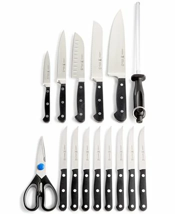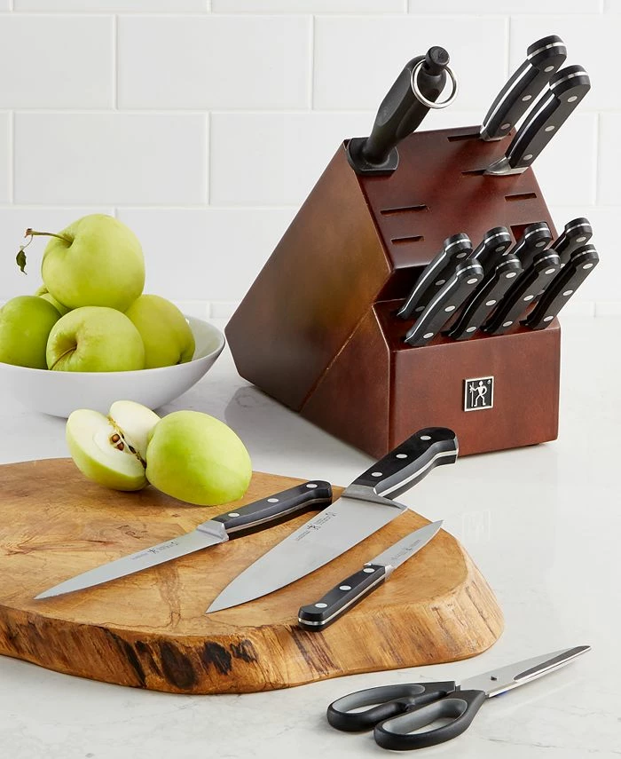 Fine-edged blades with triple-rivet handles give the knives in this Classic collection from J.A. Henckels lasting performance and comfort. The 16-piece assortment includes prep-work essentials as well as steak knives. A wooden block stylishly stores the set.