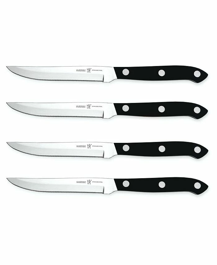 .A. Henckels International Prime Steak Knives have a classic design to fit any kitchen. 4.5″ steel blades feature micro serrations to ensure lasting sharpness. Set of four.