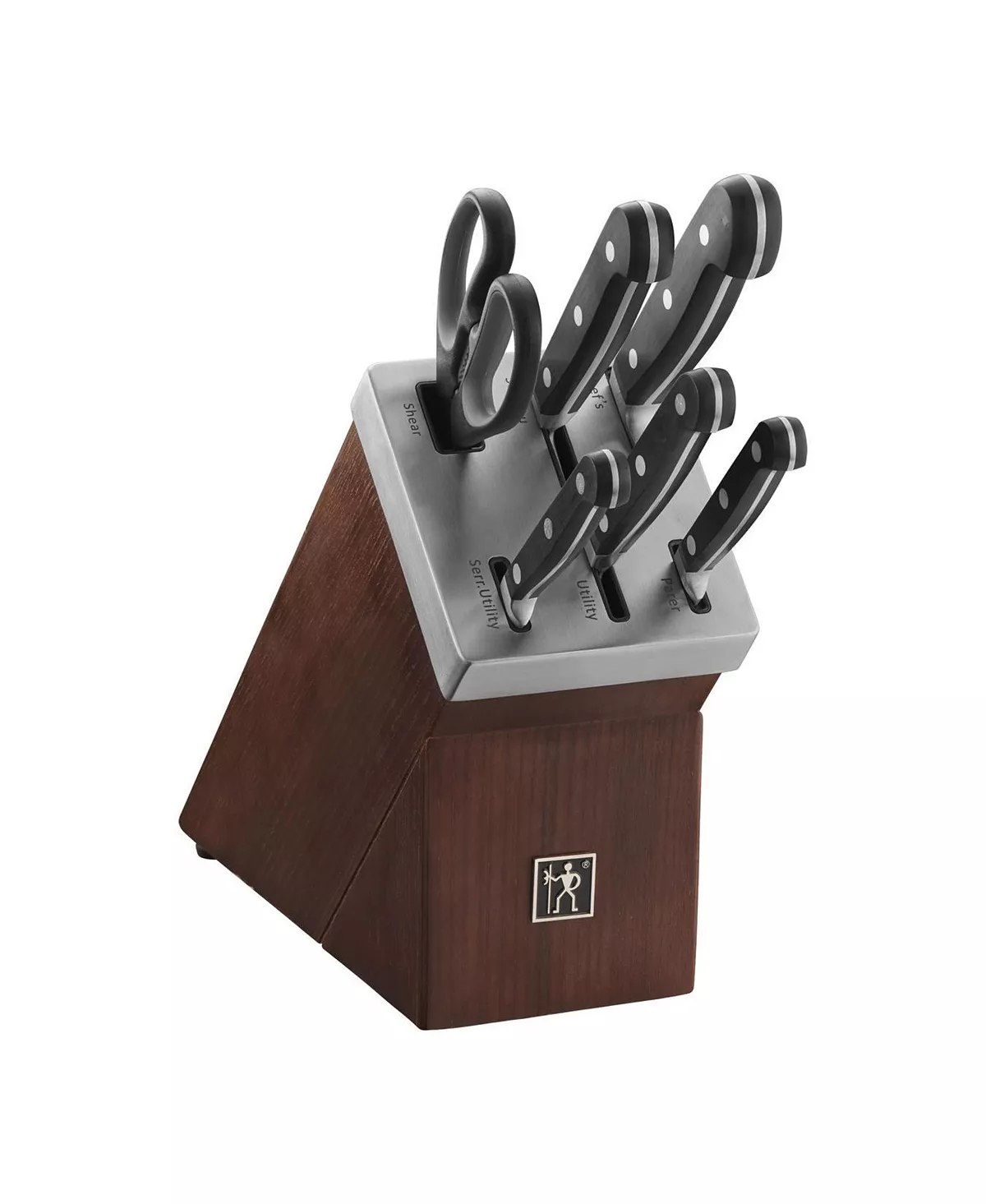 Sharpness is always within reach with Henckels International Self-Sharpening Classic Knife Blocks. The self-sharpening slots boast built-in mechanisms that automatically sharpen when knives are stored or removed. The remaining slots are for serrated knives, whose toothed blades never need sharpening. With these must-have knife blocks, enjoy effortless sharpness for precise prep work every time. Plus, their handsome stained ash wood base and stainless steel cap add aesthetic appeal to your countertop. Tailor-made for Henckels International Classic knives, these blocks help you maintain the superior sharpness of their fine edge, precision-honed blades. With a seamless transition from blade to handle, the knives’ fully forged construction provides balance while their traditional triple-rivet handle encourages tireless cutting.