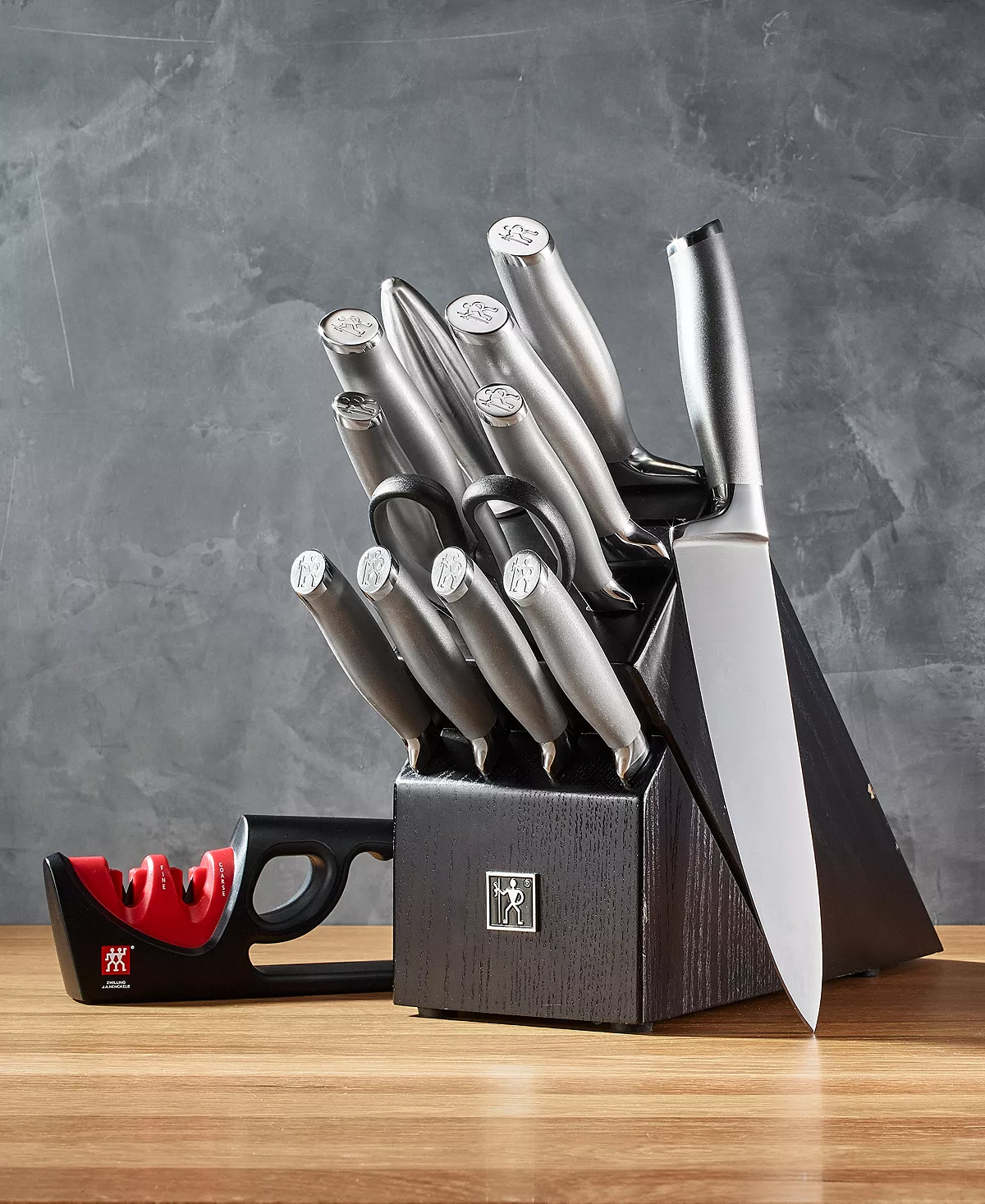 Put the fun back in cooking with precision blades and ergonomic design of this performance set from J.A. Henckels International. The sleek Modernist collection, made from stainless steel, includes the knives you turn to the most plus a stylish wooden block for storage.