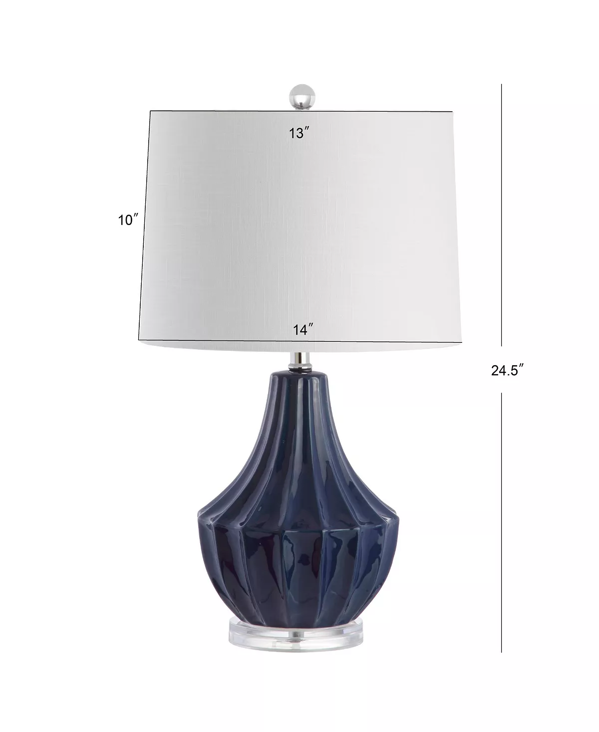 Create an inviting and stylish entertaining space with this fun ceramic gourd table lamp. A combination of a quirky pear shape and classic roman fluting make it the perfect accent for a variety of decor styles. Topped with a drum lampshade and crystal finial to complete the look, the style extends all the way to the plug with a silk-wrapped cord.