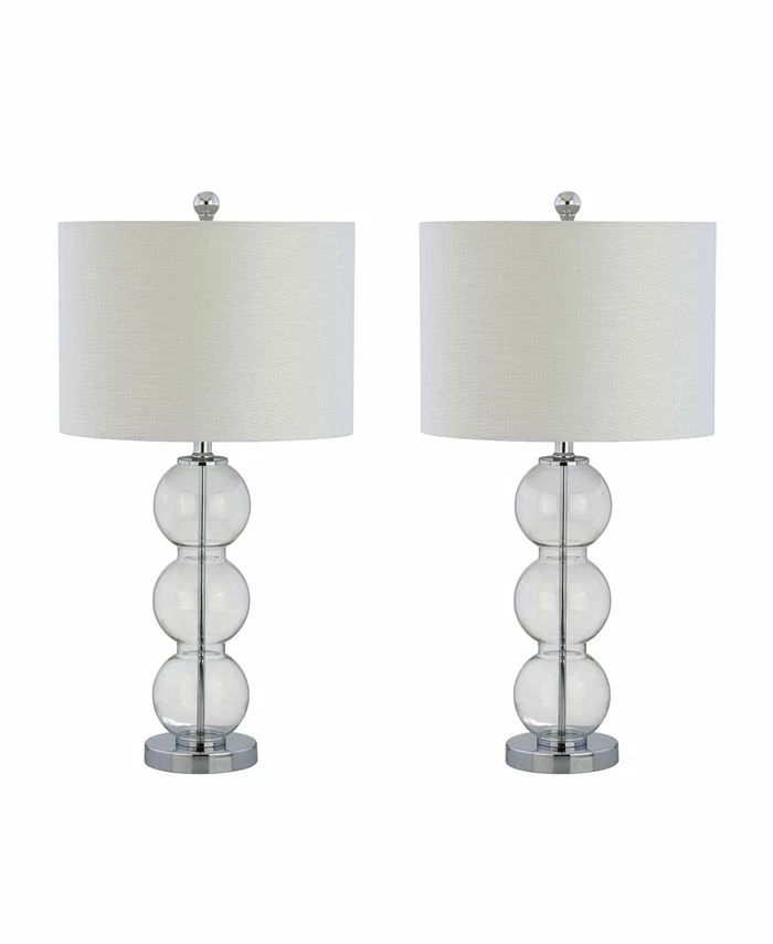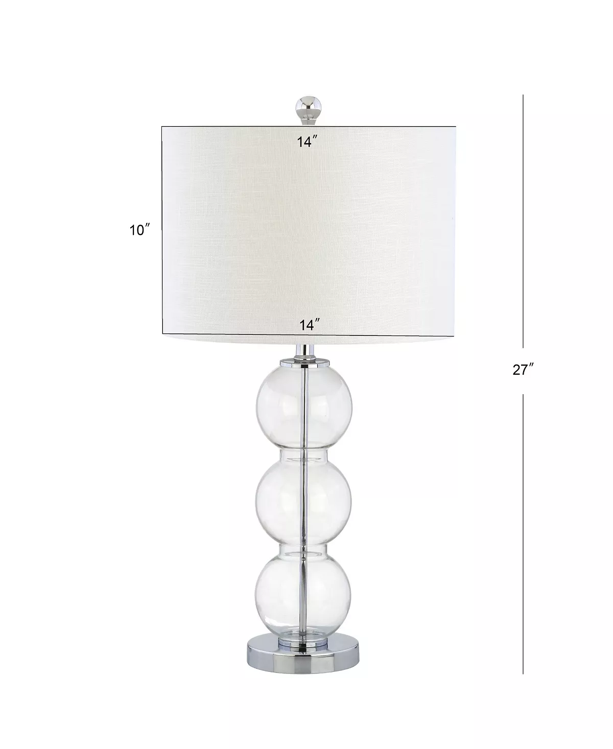 Glass blown into a trio of perfectly aligned orbs makes this lamp base an eye-catching addition to any home decor. Colored in a versatile clear glass with a chrome base and fittings, the look is completed with a matching finial and linen drum shade. Style extends all the way to the plug with a silk-wrapped cord reminiscent of classic antiques.