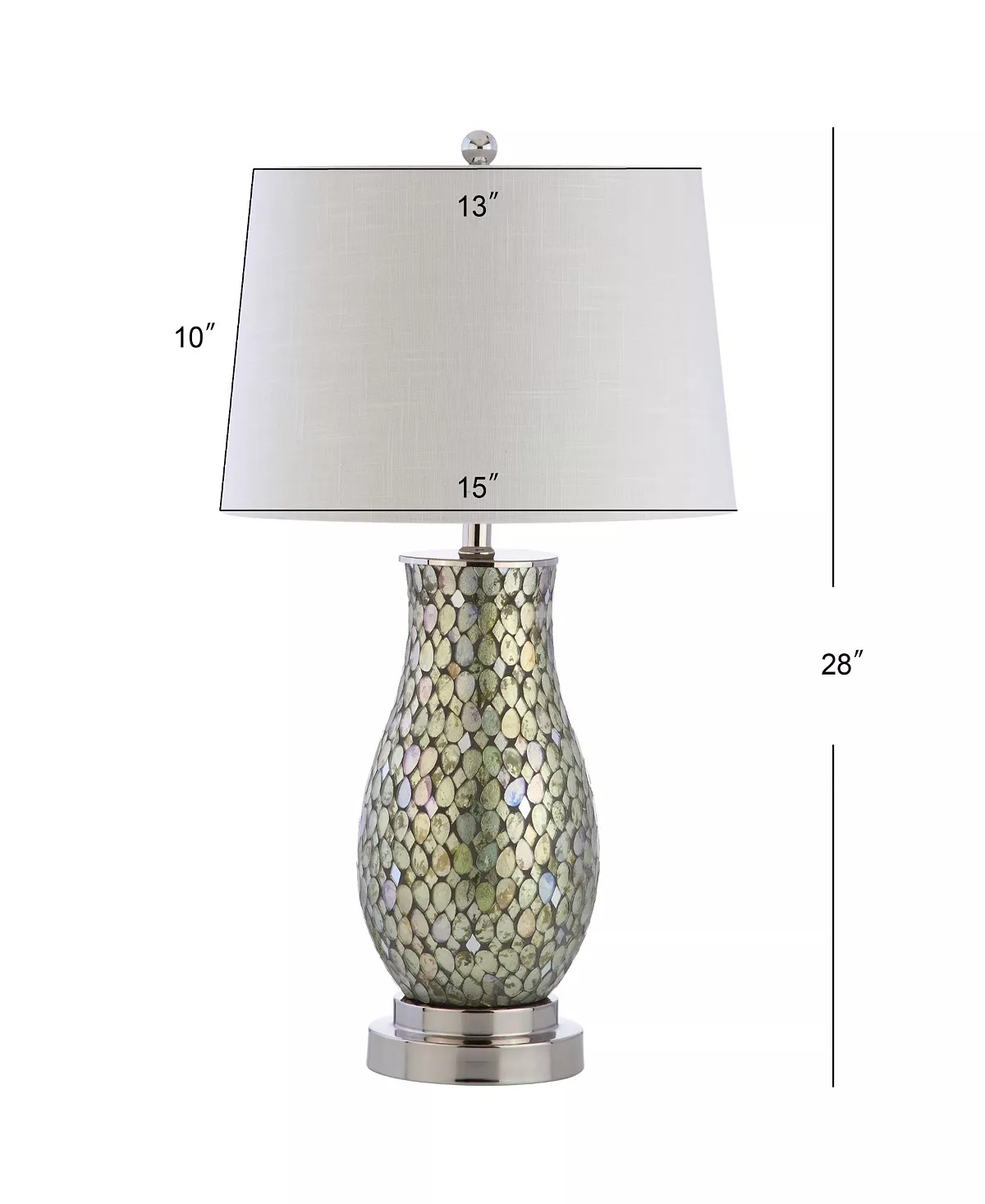 - Shades of green, silver, and ivory shine in this mosaic table lamp