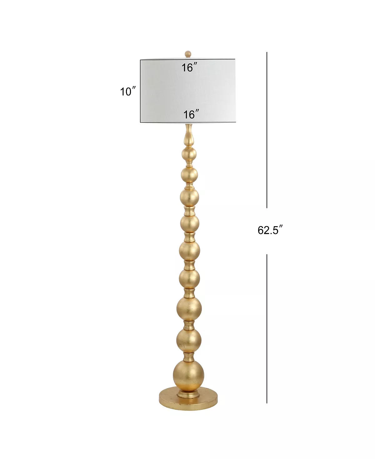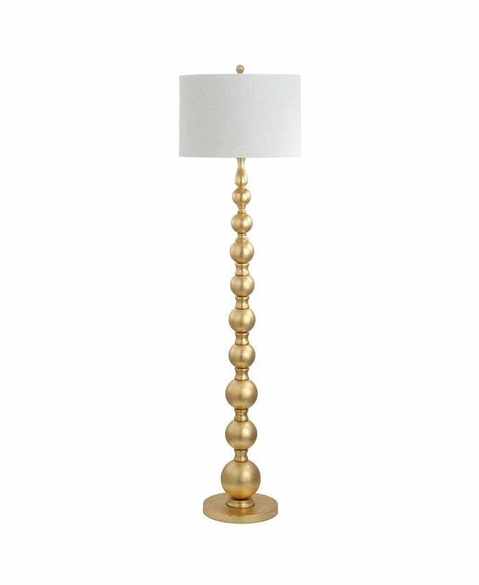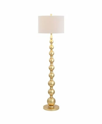 A cascading row of stacked gold balls forms the base of this floor lamp giving any reading nook or living area a polished contemporary look. A cotton shade keeps things casual while the gold finish is decidedly glam.