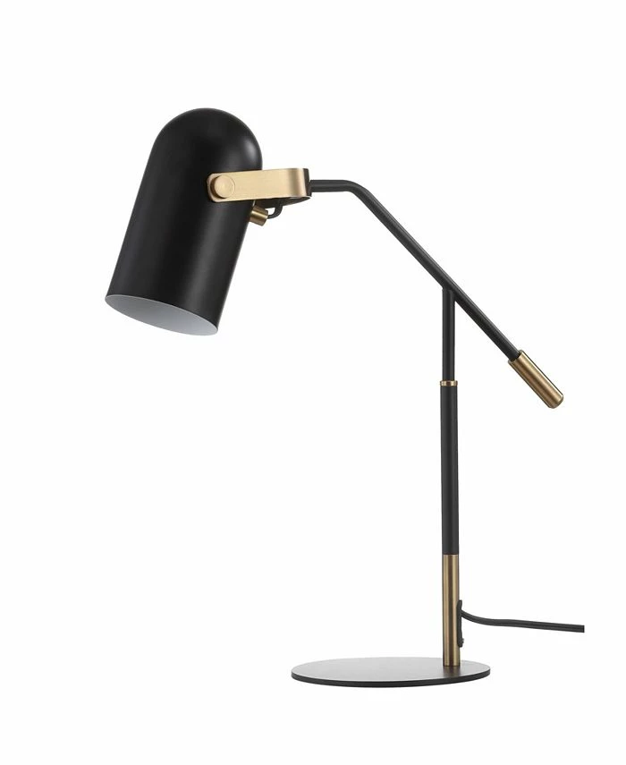 With adjustable focus, this black and brass task lamp is the perfect desk companion whether completing a homework assignment or perusing the newspaper. The design is contemporary and minimalist, while remaining eye catching. The brass accents pair well with the rest of our Edison series, which registers the current trend of gold tone hardware and geometric shapes.