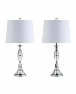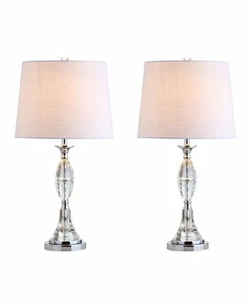 Refresh your decor with this striking crystal table lamp. The modern look features a slightly tapered shade atop a clear fluted-crystal base. A clear winner, this lamp stands out for its finishing touches — a crystal finial, chrome fittings, and a 60″ silk-wrapped cord complete the look.
