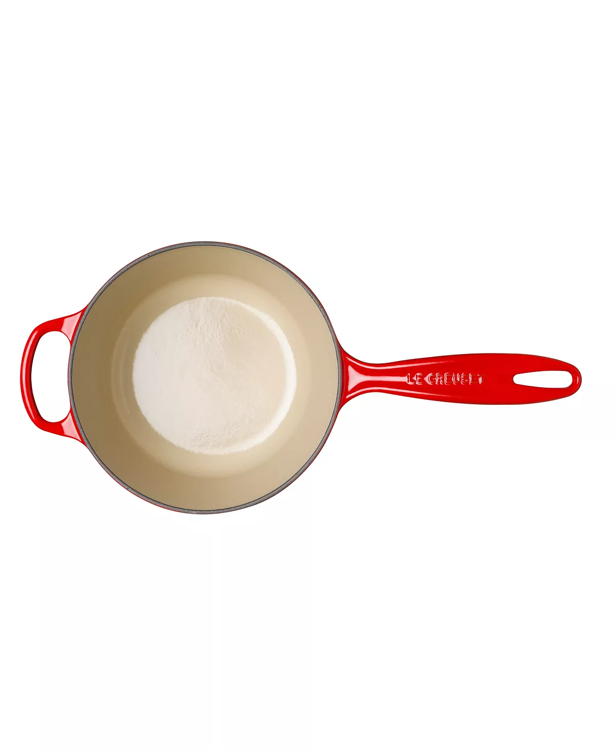 The smoothly curved interior and rounded base of the Signature saucepan make sauce making easier than ever. An extended helper handle and a contoured main handle also provide added control when transferring cookware on the stovetop or between the kitchen and the table. Crafted of durable cast iron and protected by Le Creuset’s enhanced enameling, the Signature saucepan provides the optimal medium for sauce making with its precise and responsive temperature control properties. In fact, cast iron has long been used by chefs around the world to achieve the steady low-to-medium heat required for building delicate sauces.
