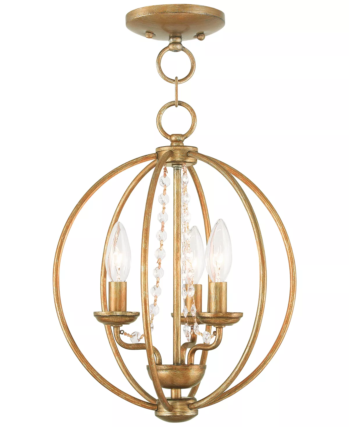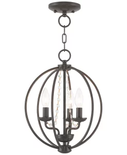 Tradition and warmth combine in the Arabella 12″ pendant lamp by Livex. The handmade steel orb shows off the classic candle-style chandelier lighting within.