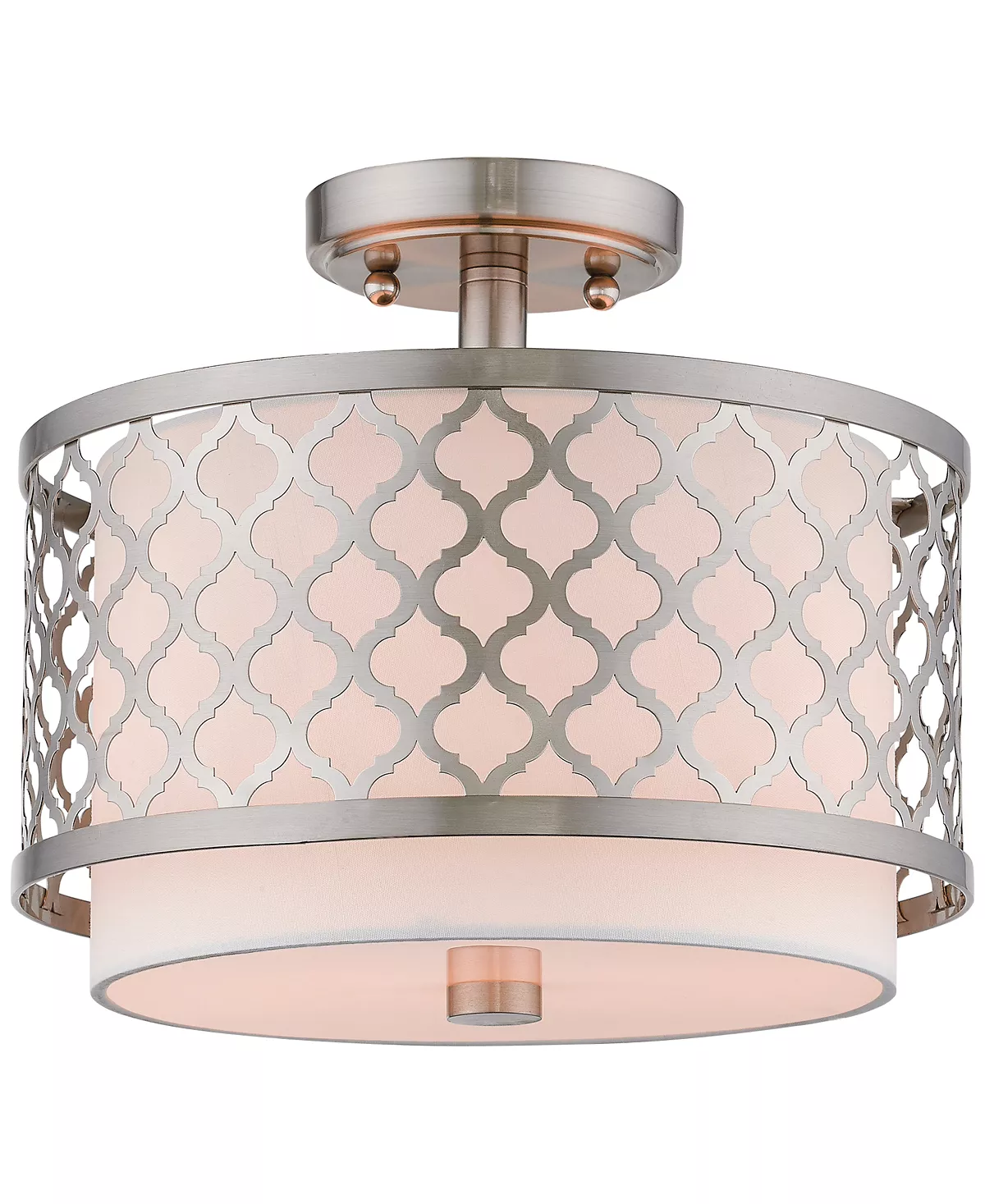 Bring instant ambiance to your space with the handmade Arabesque 2-Light flush mount from Livex. The quatrefoil cut-out design evokes Moroccan style, and the interior shade and clean lines add a modern polish.