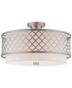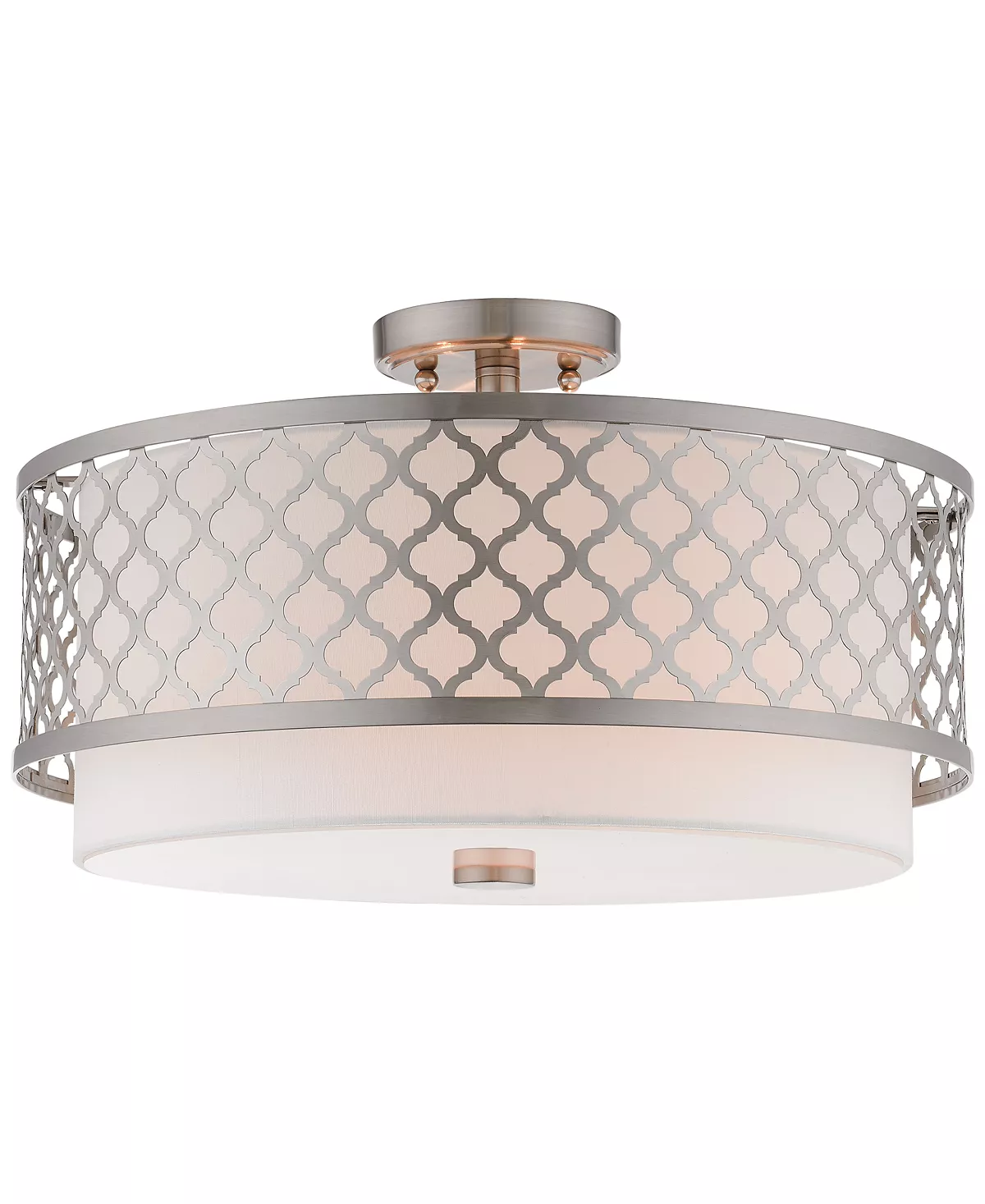 Bring instant ambiance to your space with the handmade Arabesque 3-Light semi flush from Livex. The quatrefoil cut-out design evokes Moroccan style, and the interior shade and clean lines add a modern polish.