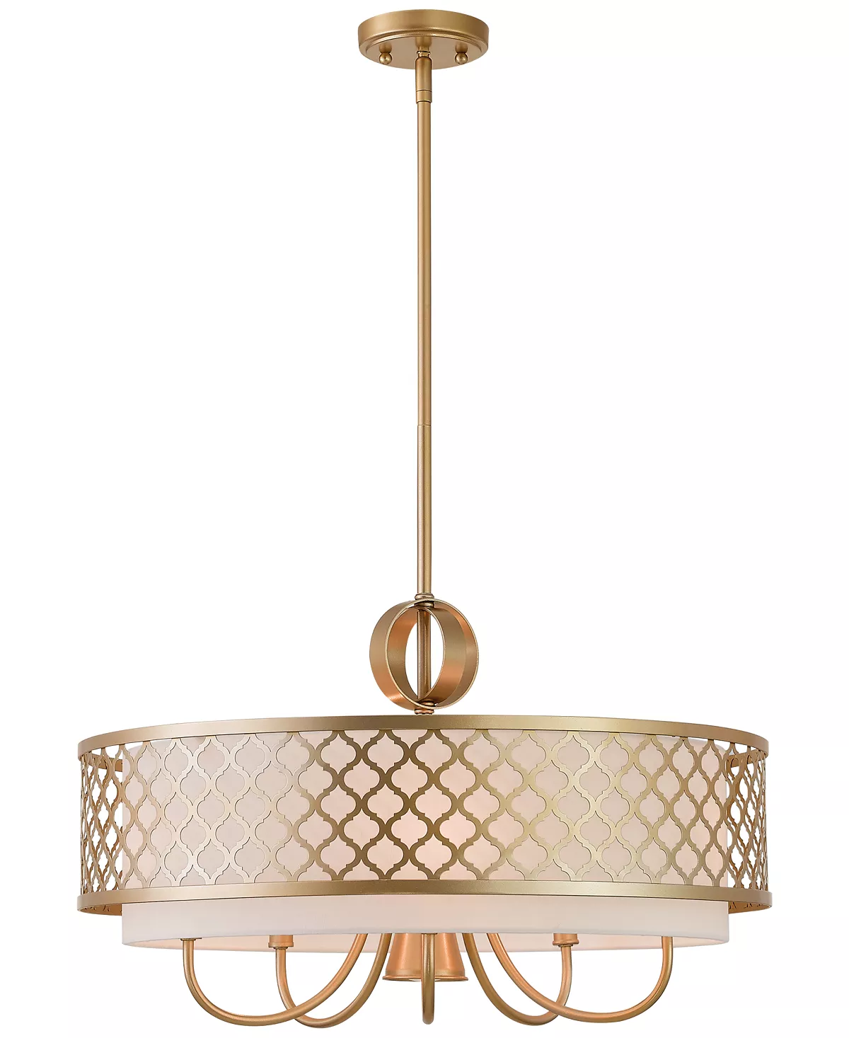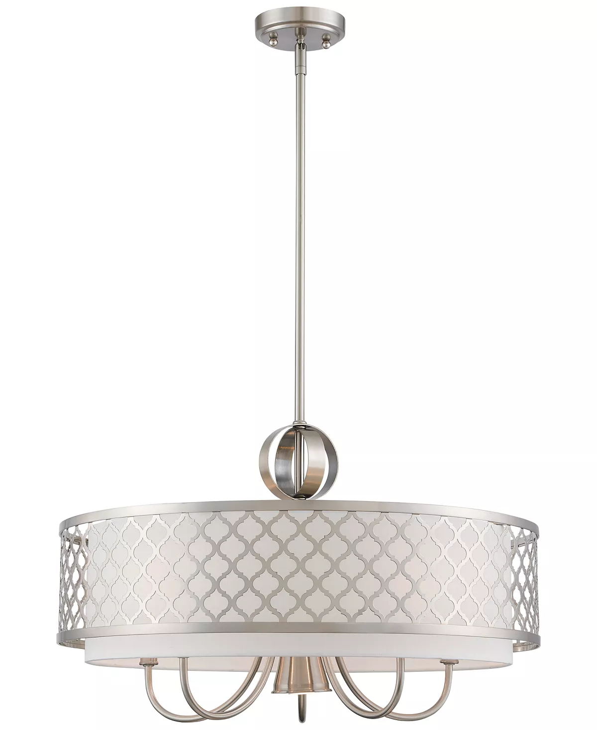 Bring instant ambiance to your space with the handmade Arabesque 5-Light pendant from Livex. A candelabra and down light are surrounded by a quatrefoil cut-out design that evokes Moroccan style, along with a modern steel hoop detail.