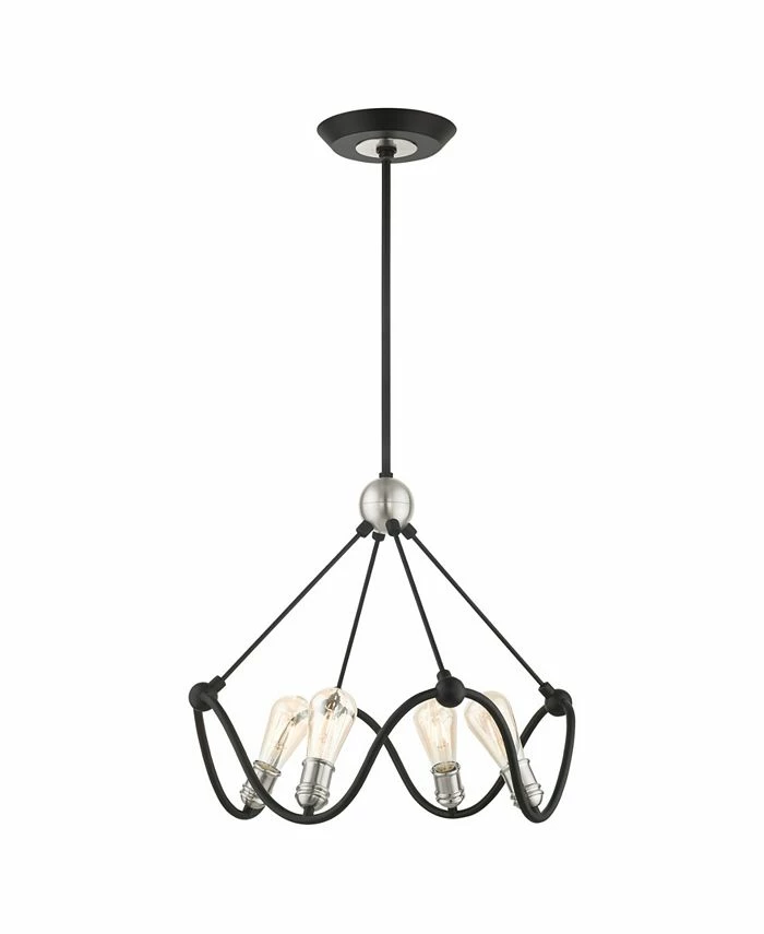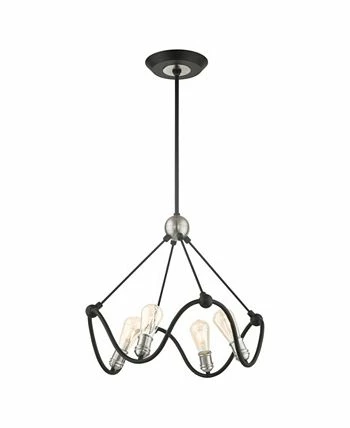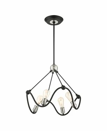 Industrial, urban and stylish, its graphic lines will emphasize the airy flow of a contemporary loft interior. The wrought iron is finished in black and is combined with brushed nickel accents. It pairs perfectly with Edison style type bulbs.