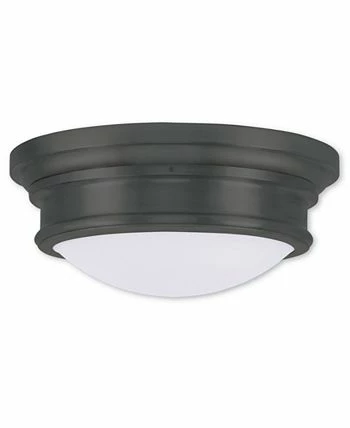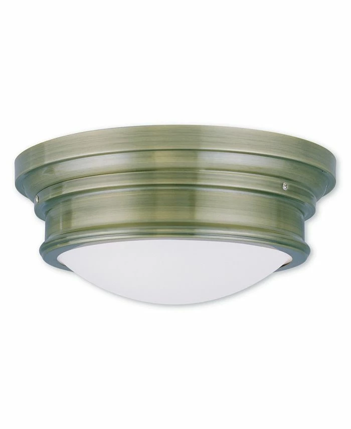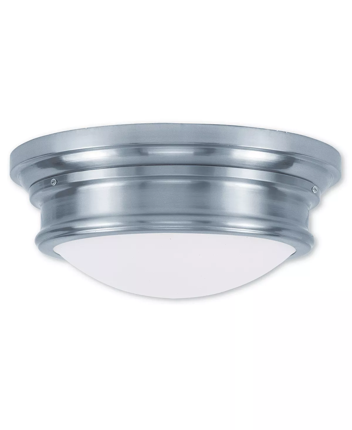 With a beautiful finish paired with hand blown satin opal white glass, this sleek flush mount will complement your transitional decor with its clean, stylish look.