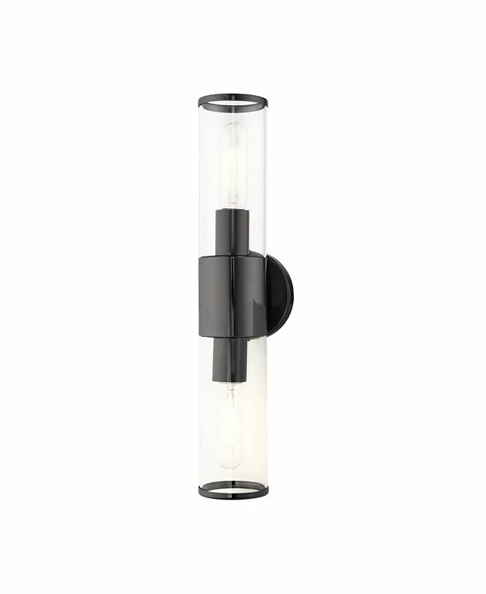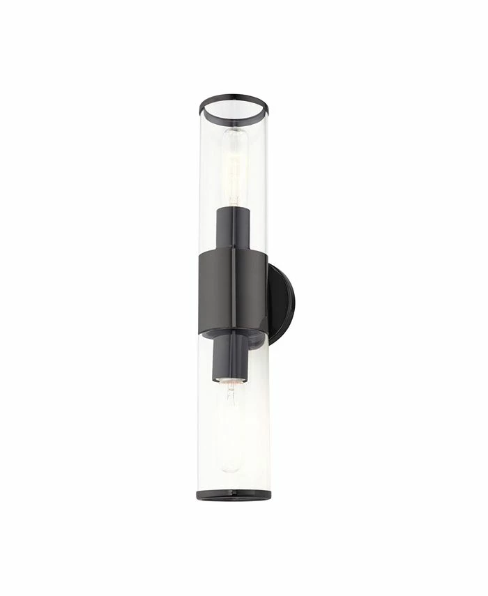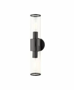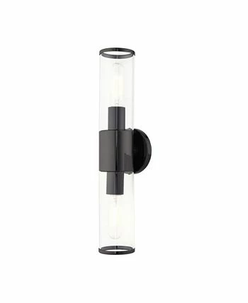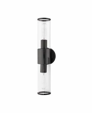 Add a dash of character and radiance to your home with this vanity sconce. This two-light fixture from the Bancroft Collection features a finish with two clear hand blown glass cylinder shades on either side, intentionally exposing the bulb inside for a trendy look.