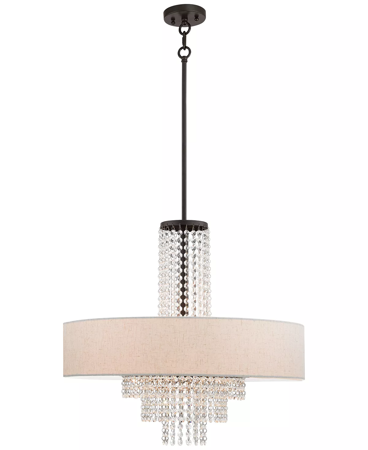 Make a stunning and elegant statement in your space with the handmade Carlisle five-light pendant chandelier by Livex. Four tiers of cascading crystals add glamour and drama around the sizable hand-crafted shade.