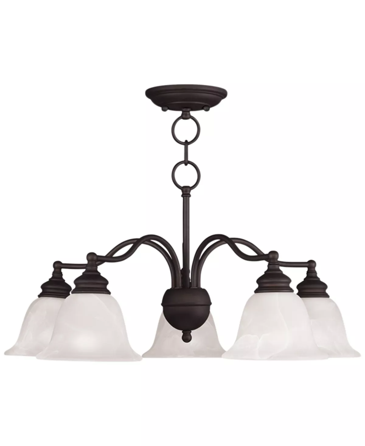 Tradition meets modern finishes in the Essex Chandelier light from Livex. Five fluted alabaster glass shades hang from the refined, bronze-tone frame.