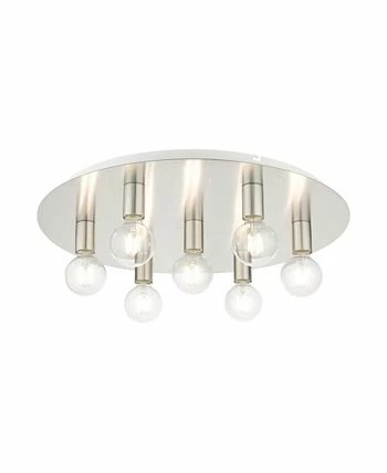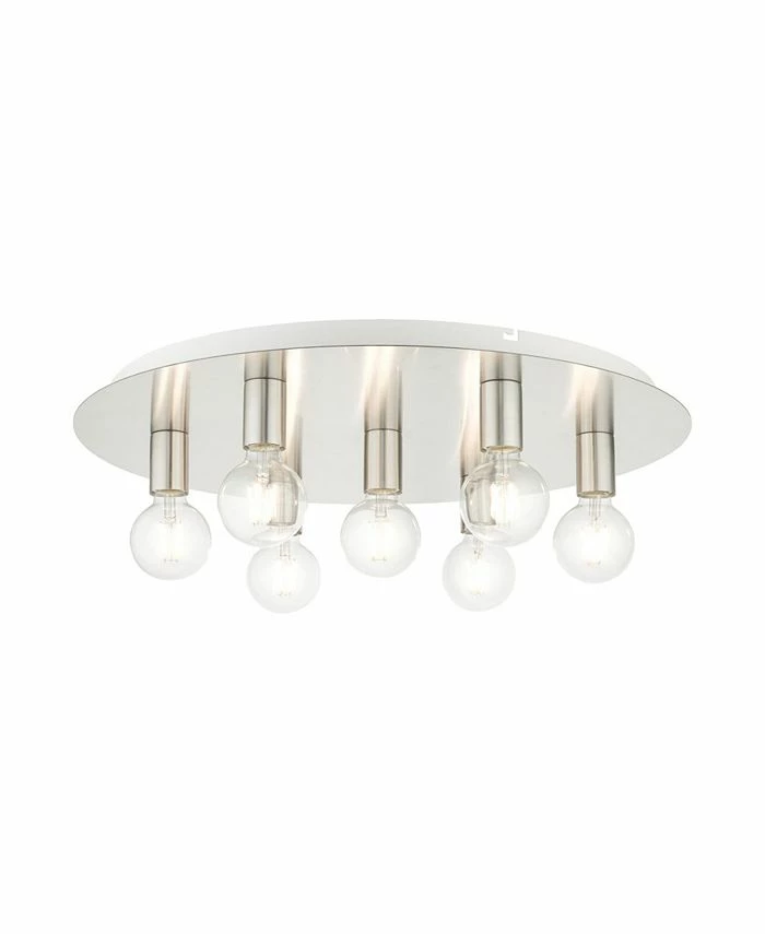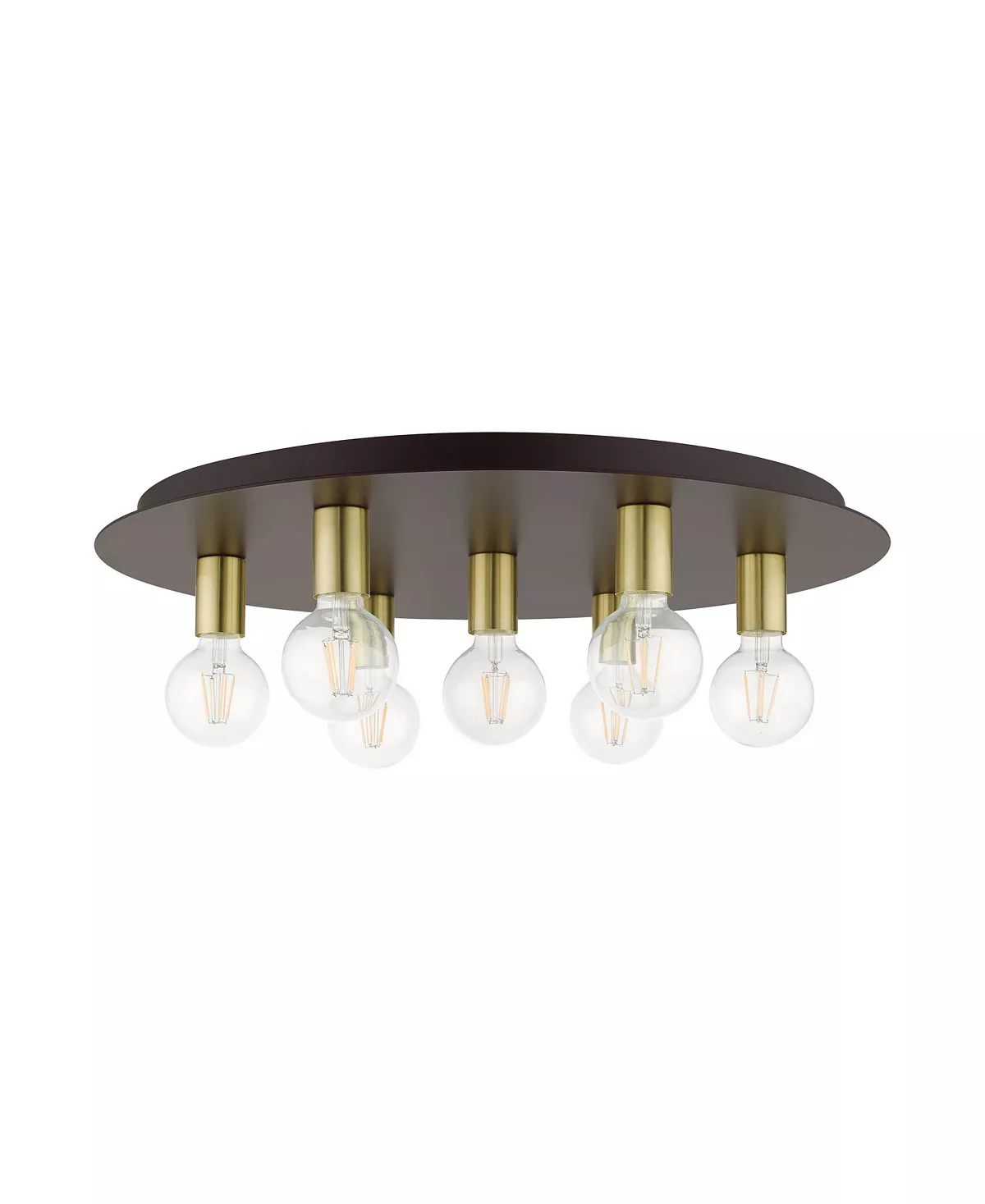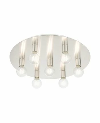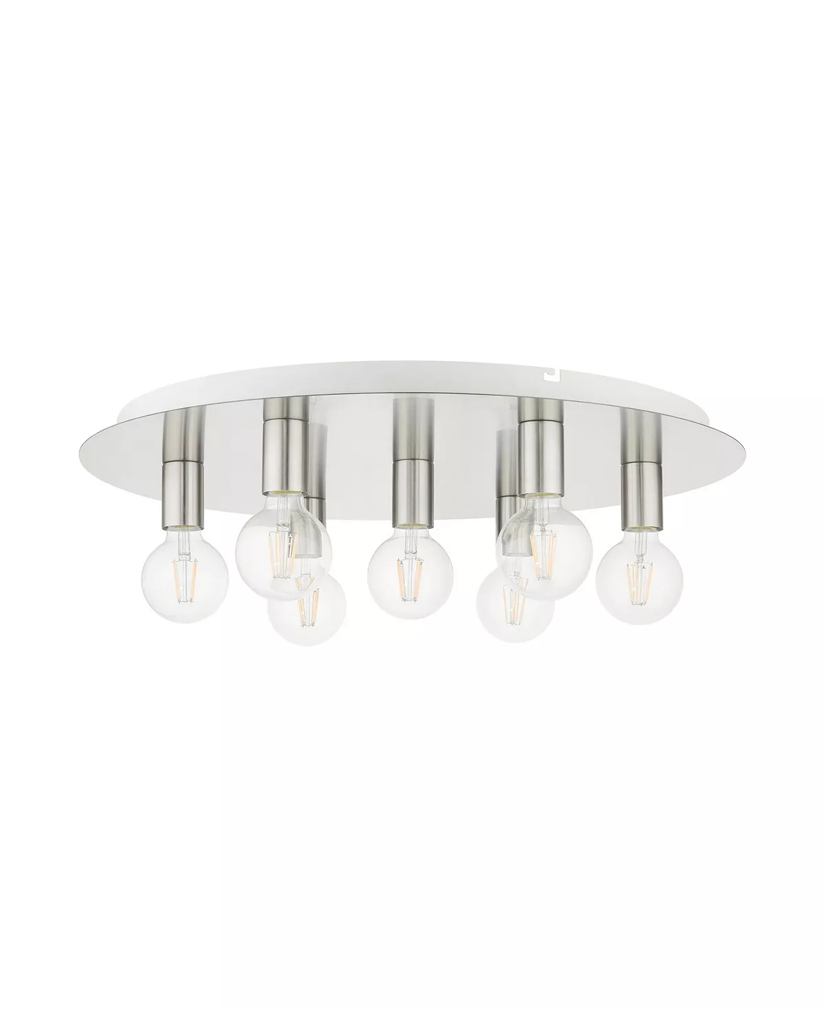 Minimal and versatile describes the Hillview collection. Two-tone finishes grace this group creating a stylish and sophisticated appearance. This seven-light flush mount ceiling fixture will look great in a traditional, transitional, modern or contemporary bedroom, hallway, bathroom and kitchen.