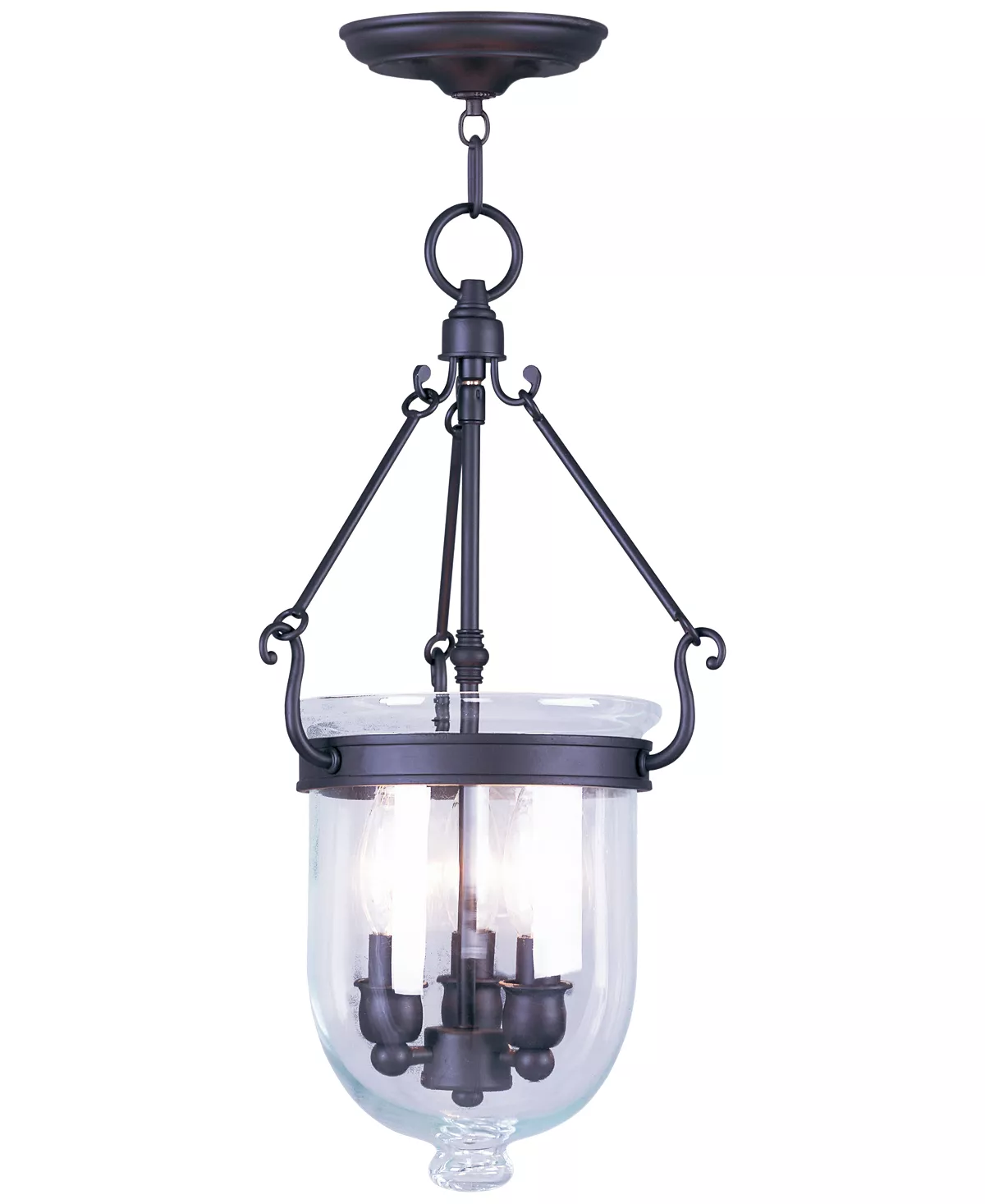 Inspired by vintage pieces, the warm bronze finish and clear glass shade of this hand made Jefferson pendant by Livex can instantly bring classic style and brilliant light to any space.