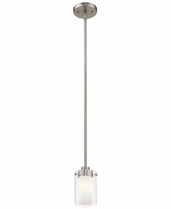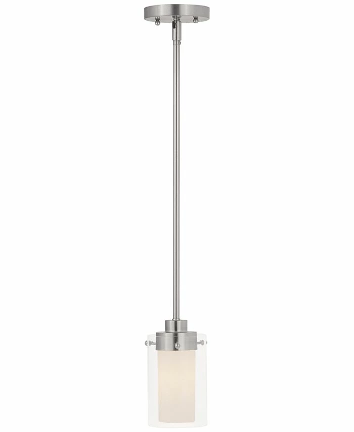 Sleek and sophisticated, the Manhattan Mini pendant light by Livex suits transitional décors. The brushed nickel-tone finish captures modern trends and the handblown, double-wall glass shade has an opal center that creates a warm glow.