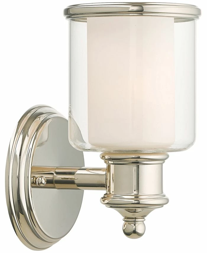 A shimmering polished nickel finish and combination of hand-blown and satin opal white glass shades speak of a magnificent fusion of traditional and modern design aesthetics on this illuminating handmade Middlebush Sconce by Livex.