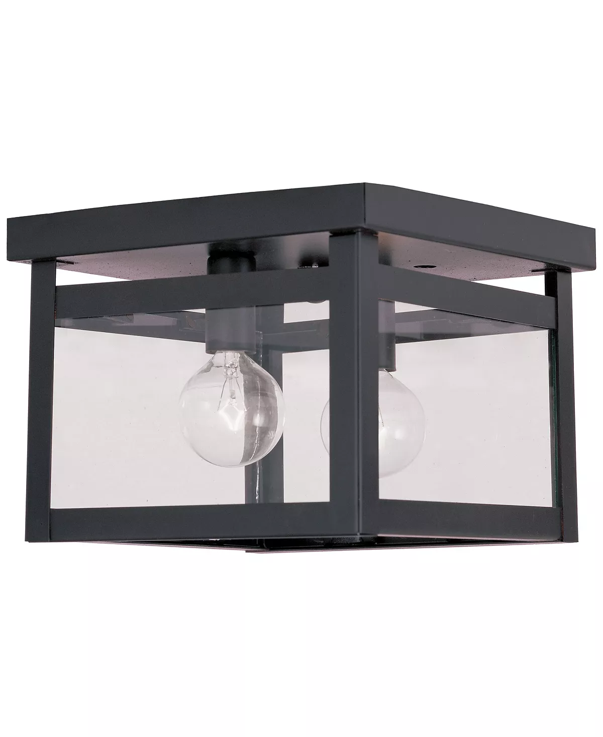 Modern styling and classic materials merge in the handmade Milford Ceiling flush mount by Livex. A bronze-tone square frame and a duo of interior lights make a handsome impression in your space.