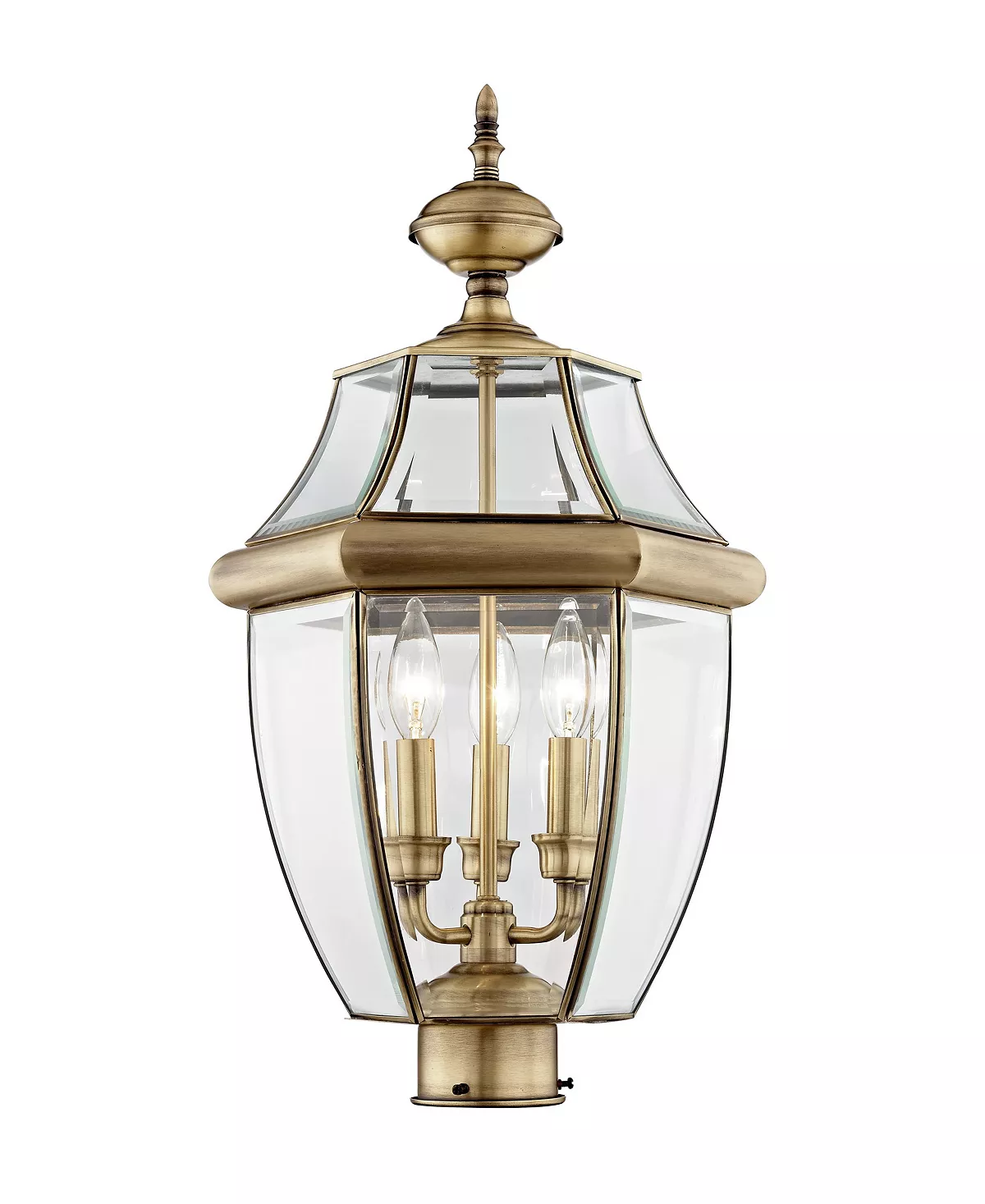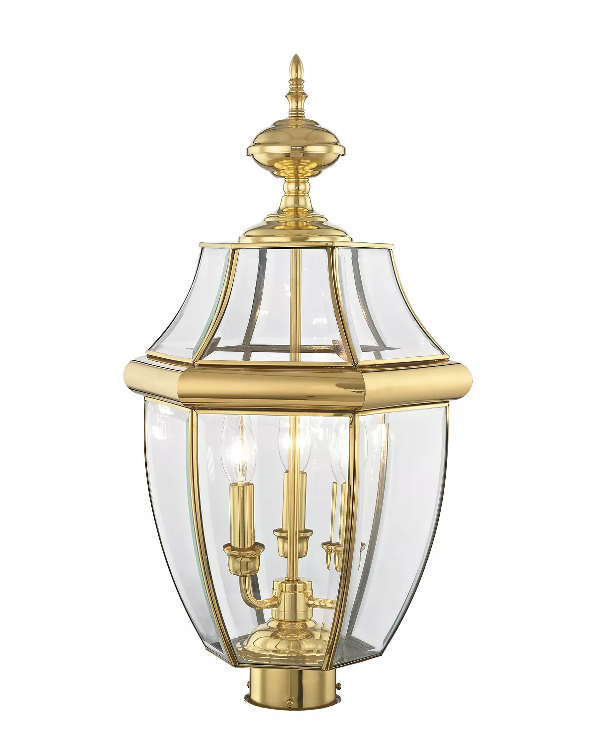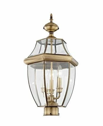The Monterey outdoor lighting features clean, crisp lines complemented by the graceful curves of beveled glass. Crafted from sturdy solid brass this handsome colonial styling makes this fixture a perfect addition to your outdoor spaces.