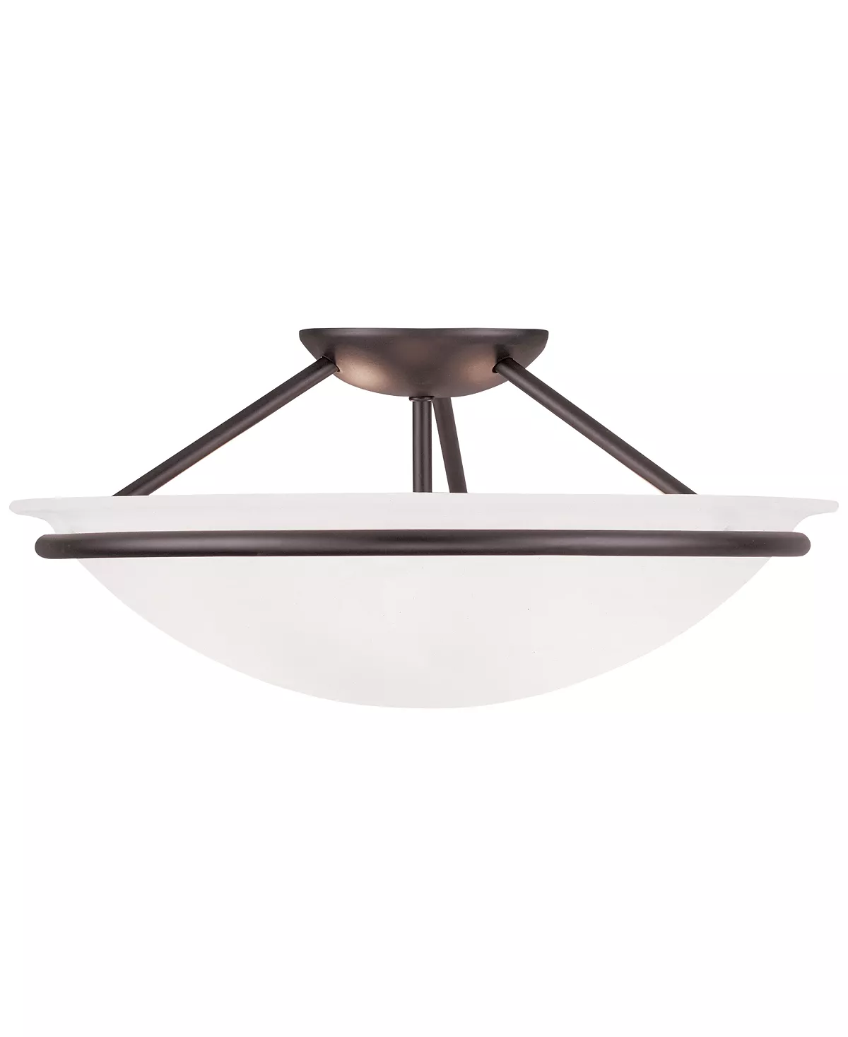 This handsome hand made Newburge ceiling lamp by Livex offers a subtle update on a classic style with its warm bronze finish and alabaster shade.