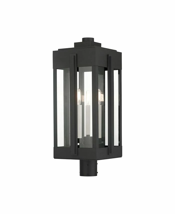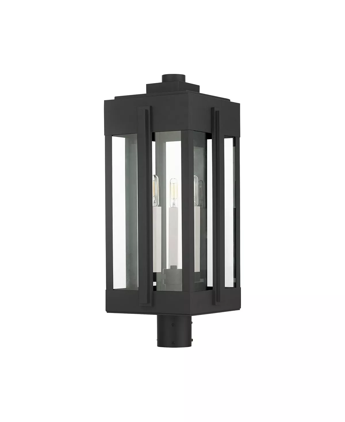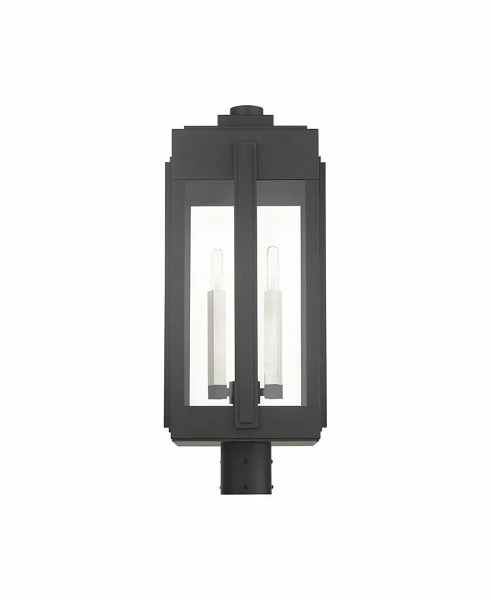 The Lexington collection is both majestic and grand which reflects the geometric lines and elegant charm of Art Deco style. The black finish with brushed nickel accents, clear glass and hand crafted solid brass frame make this series a luxurious statement for an upscale contemporary home exterior.