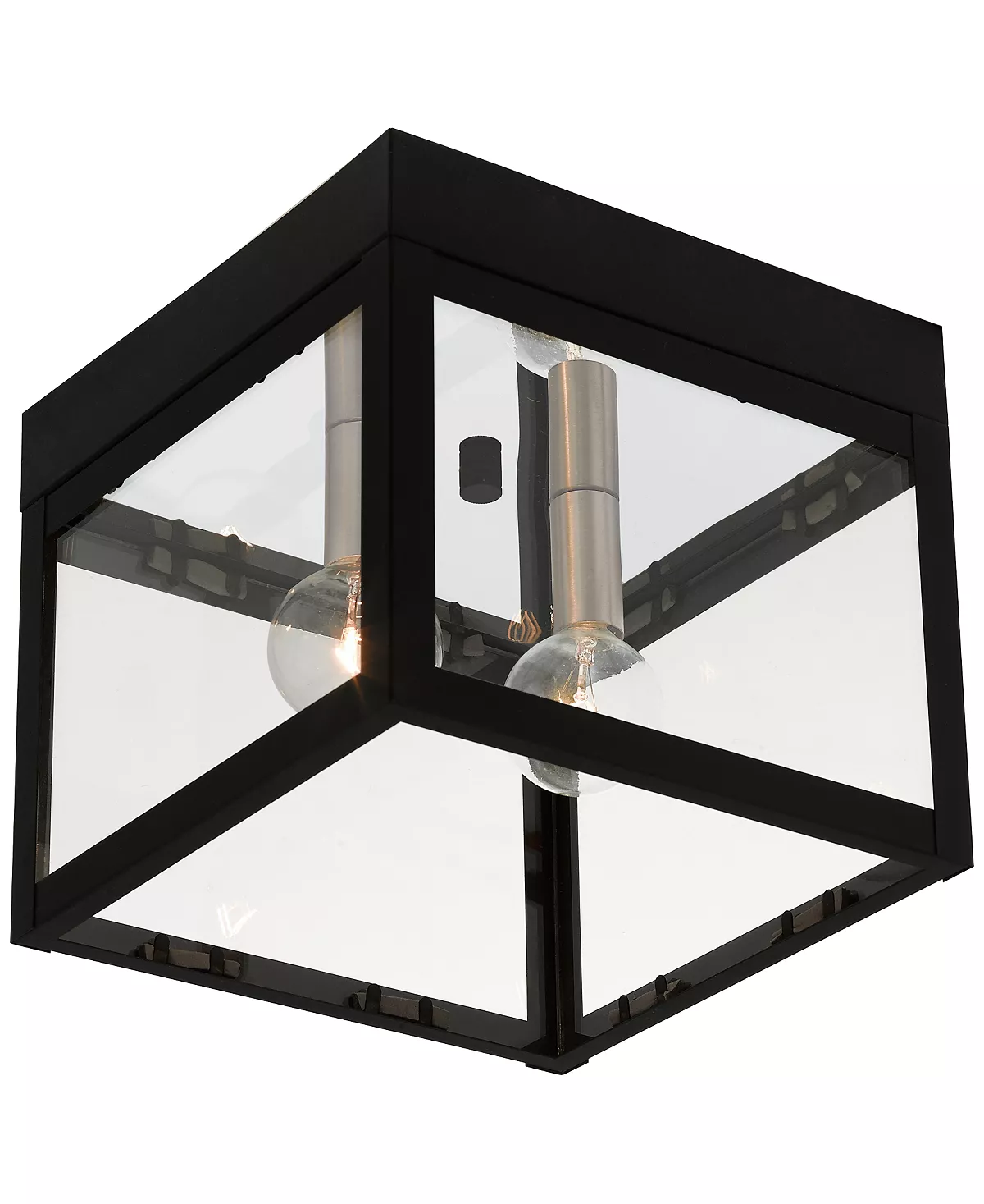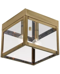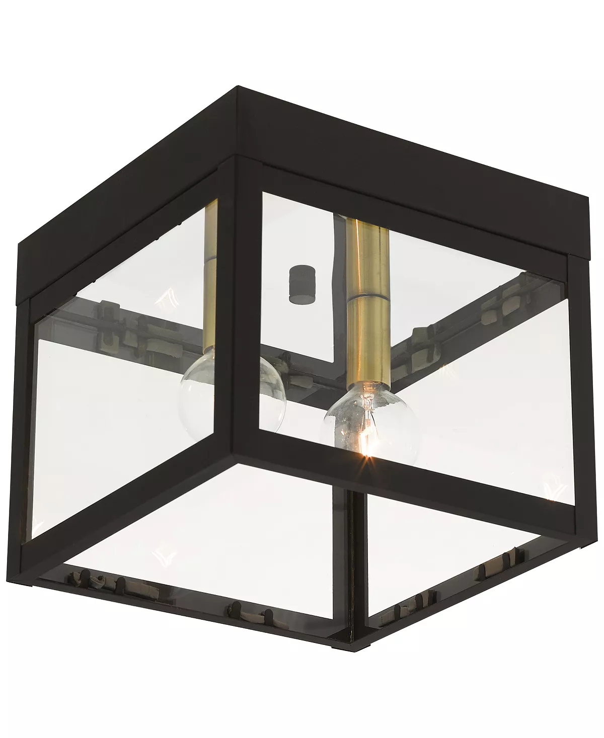 Simple and timeless, the handmade Nyack 2-Light flush mount by Livex helps complete the look of any space. The subdued, modern vintage finish and clear glass panels let the bold lines of this solid brass piece speak for itself.