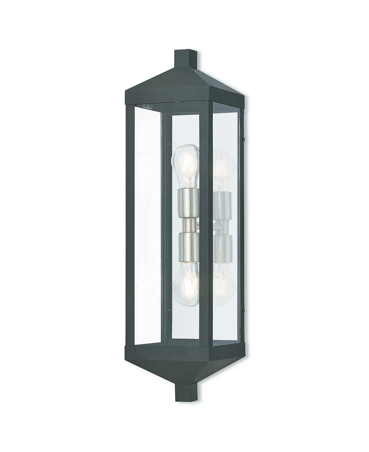 The dramatically simple shape and bold lines help define our Nyack wall lantern. Featured in a black finish, this outdoor wall lantern has panels of clear glass.